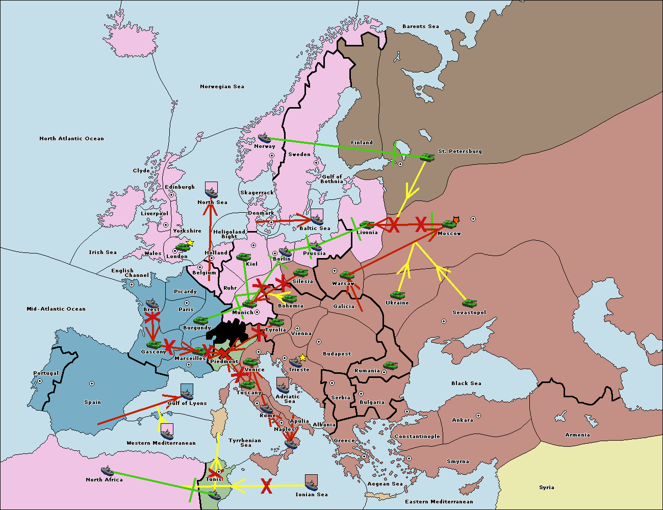 The fleet at Prussia support move to Livonia from Baltic Sea.