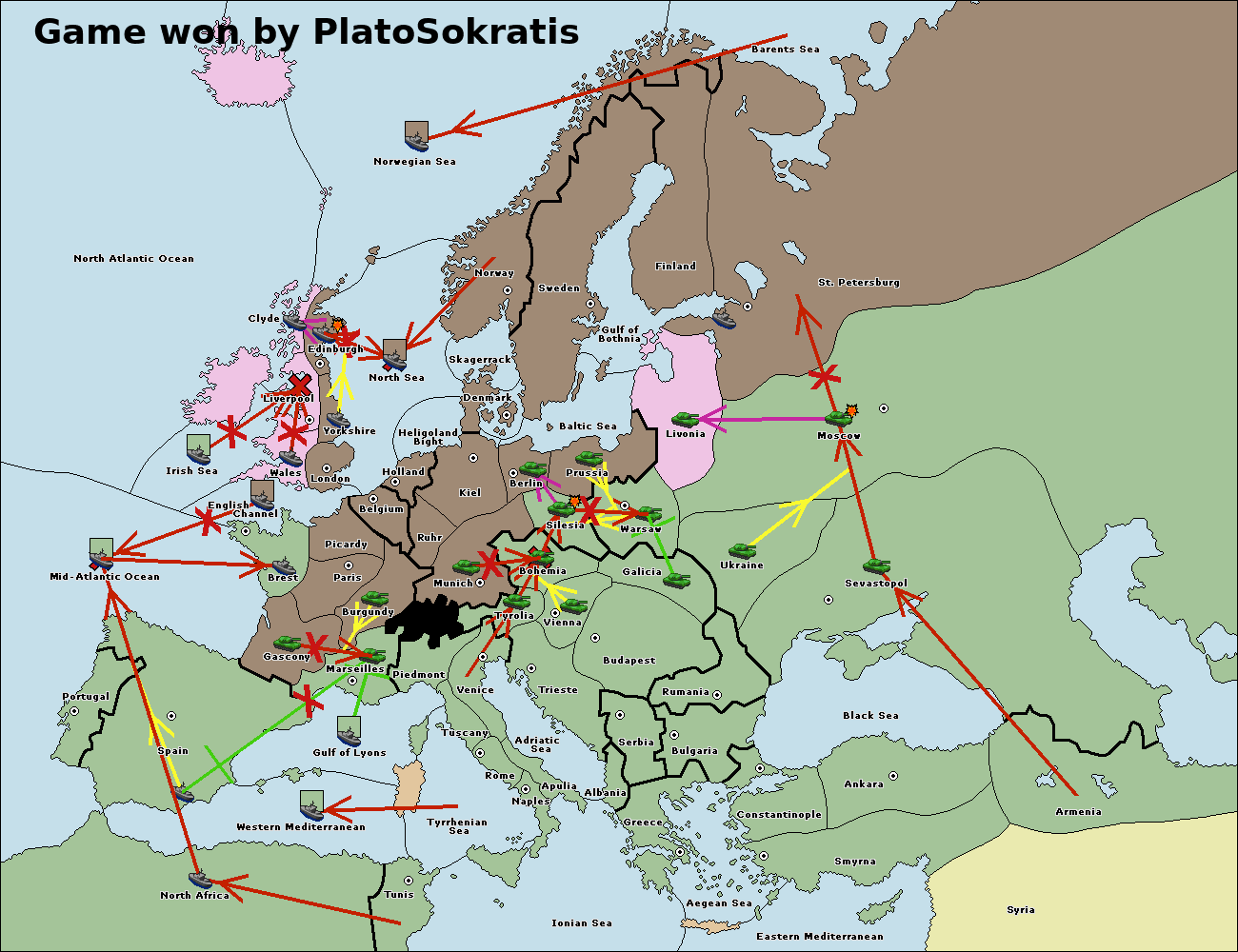 The fleet at North Africa move to Mid-Atlantic Ocean.