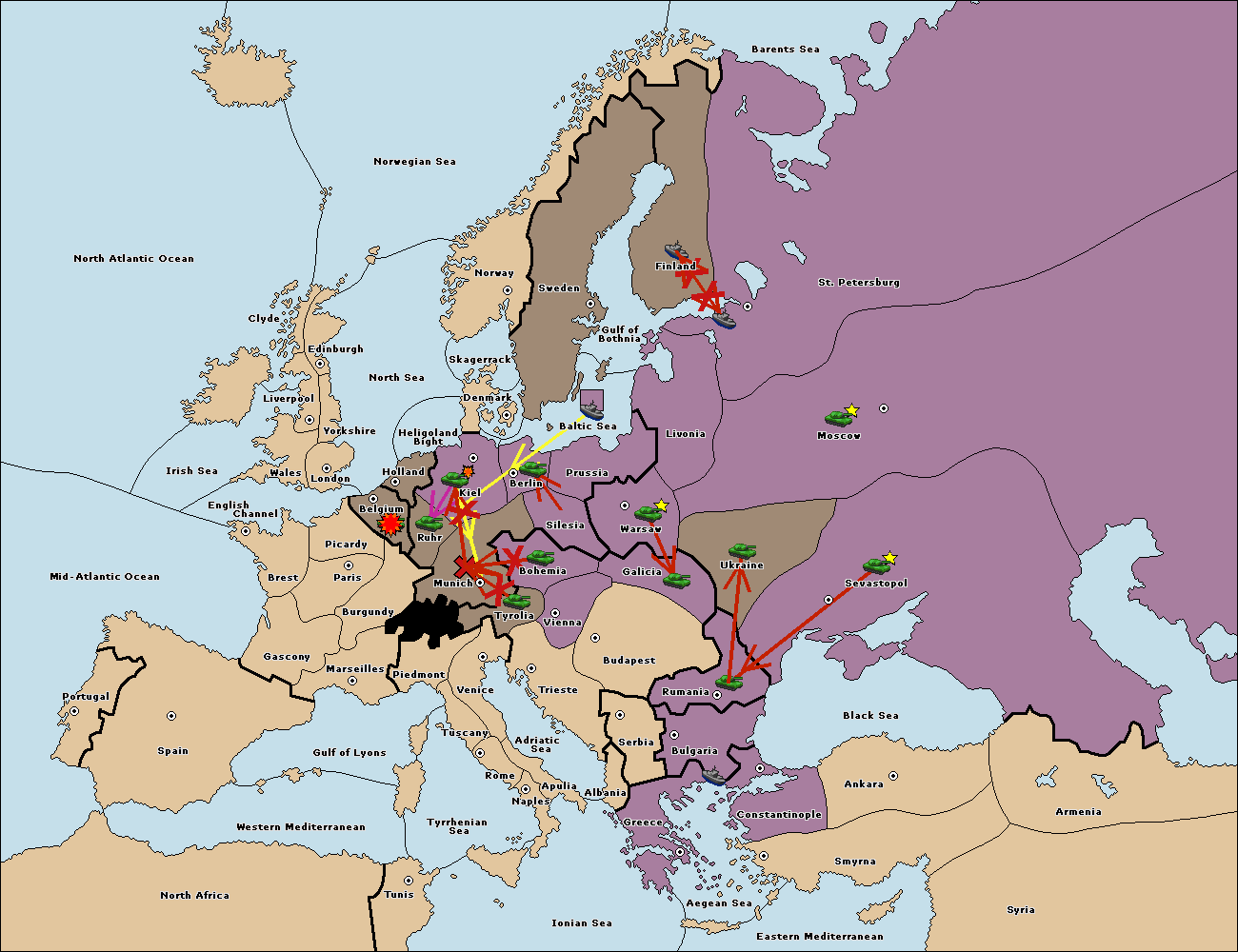 The fleet at Bulgaria (South Coast) move to Aegean Sea.