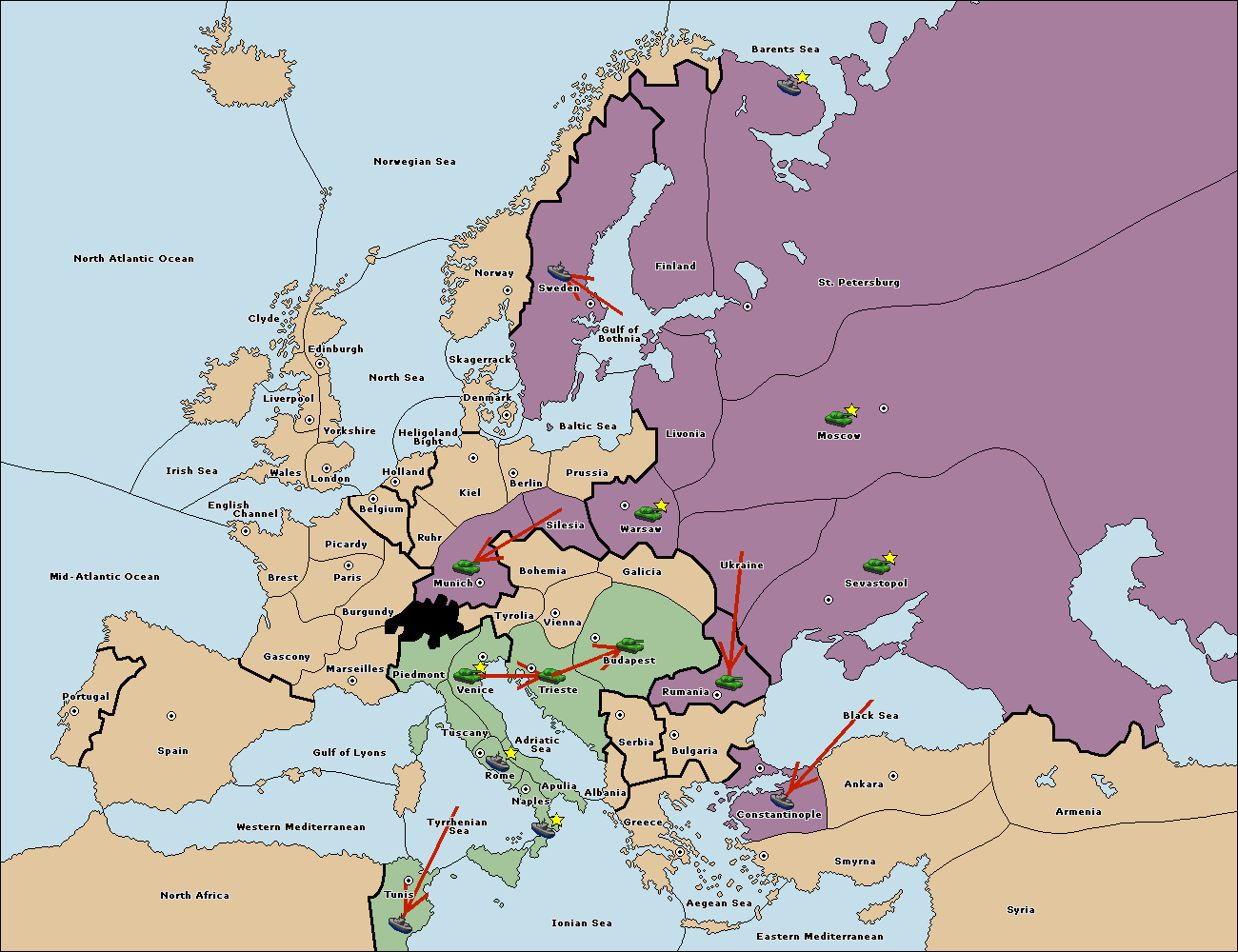 The fleet at St. Petersburg (South Coast) move to Gulf of Bothnia.