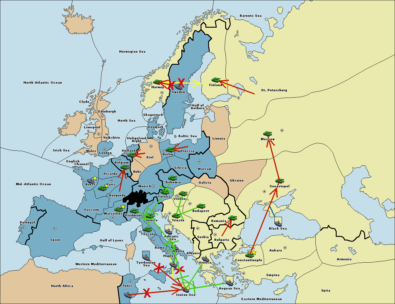 The fleet at Naples support move to Ionian Sea from Tunis.