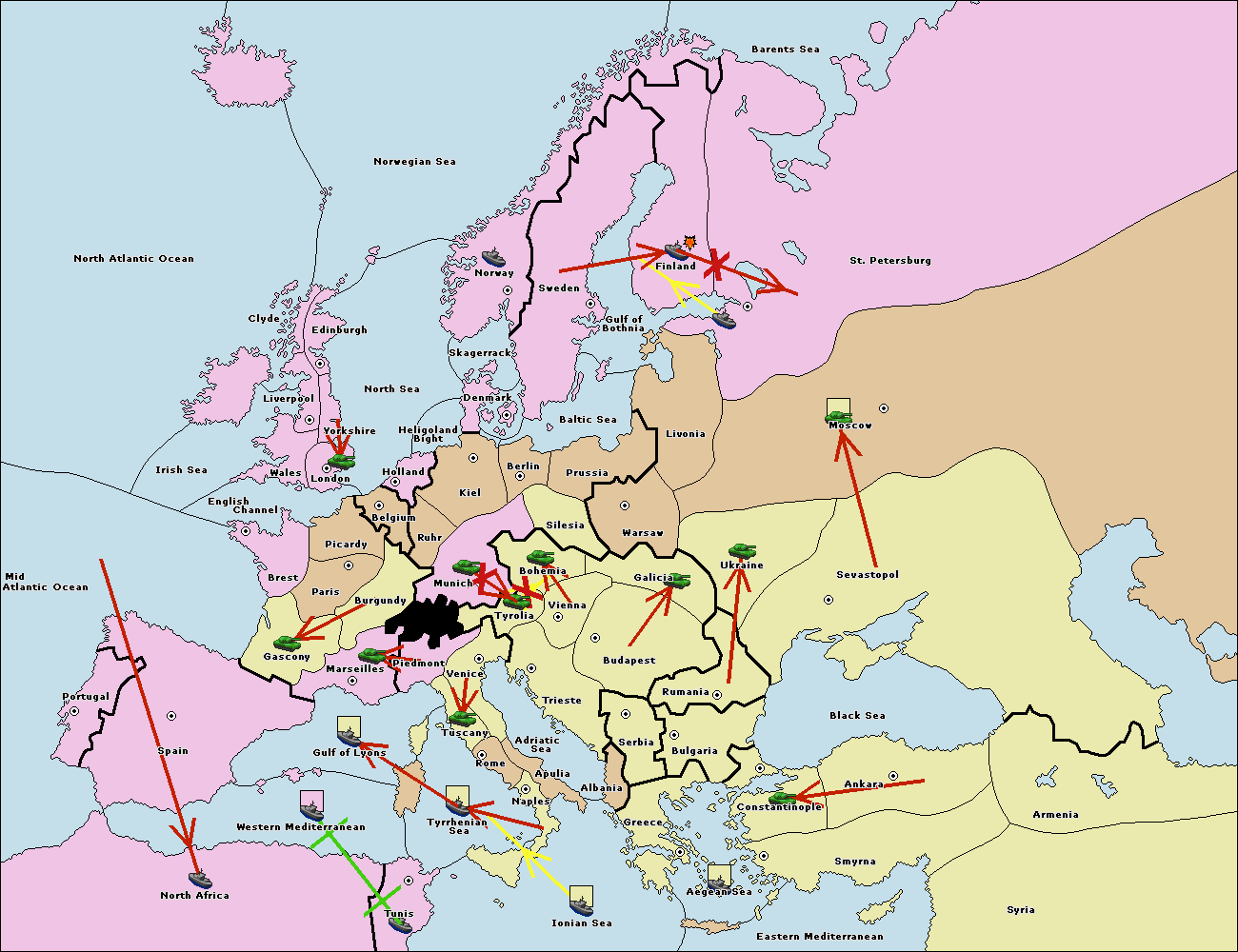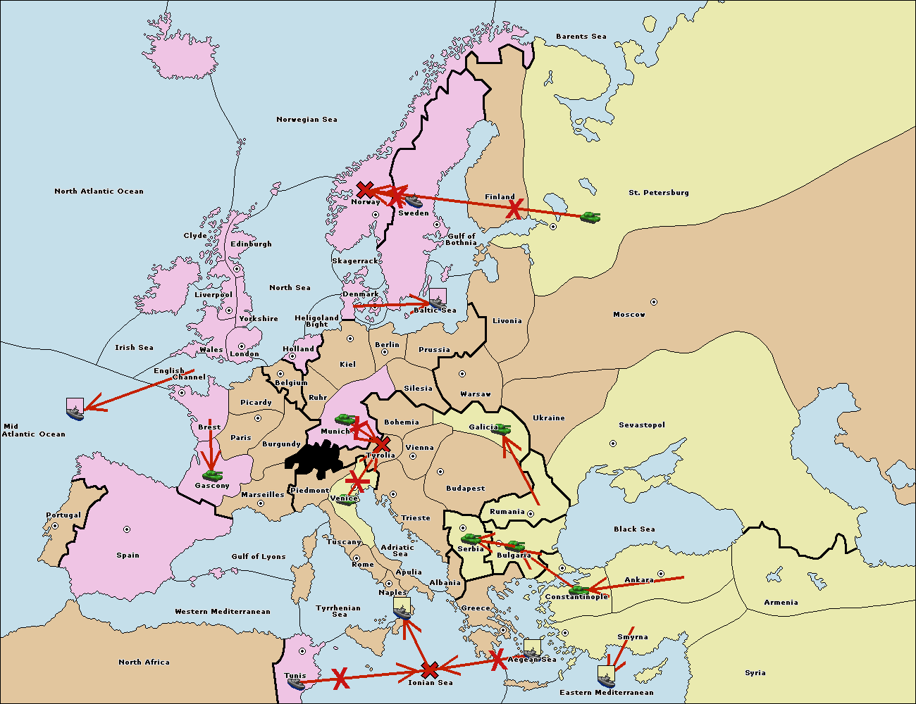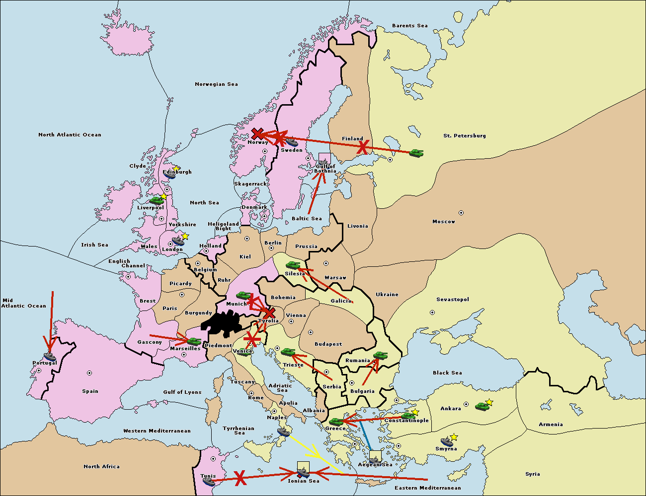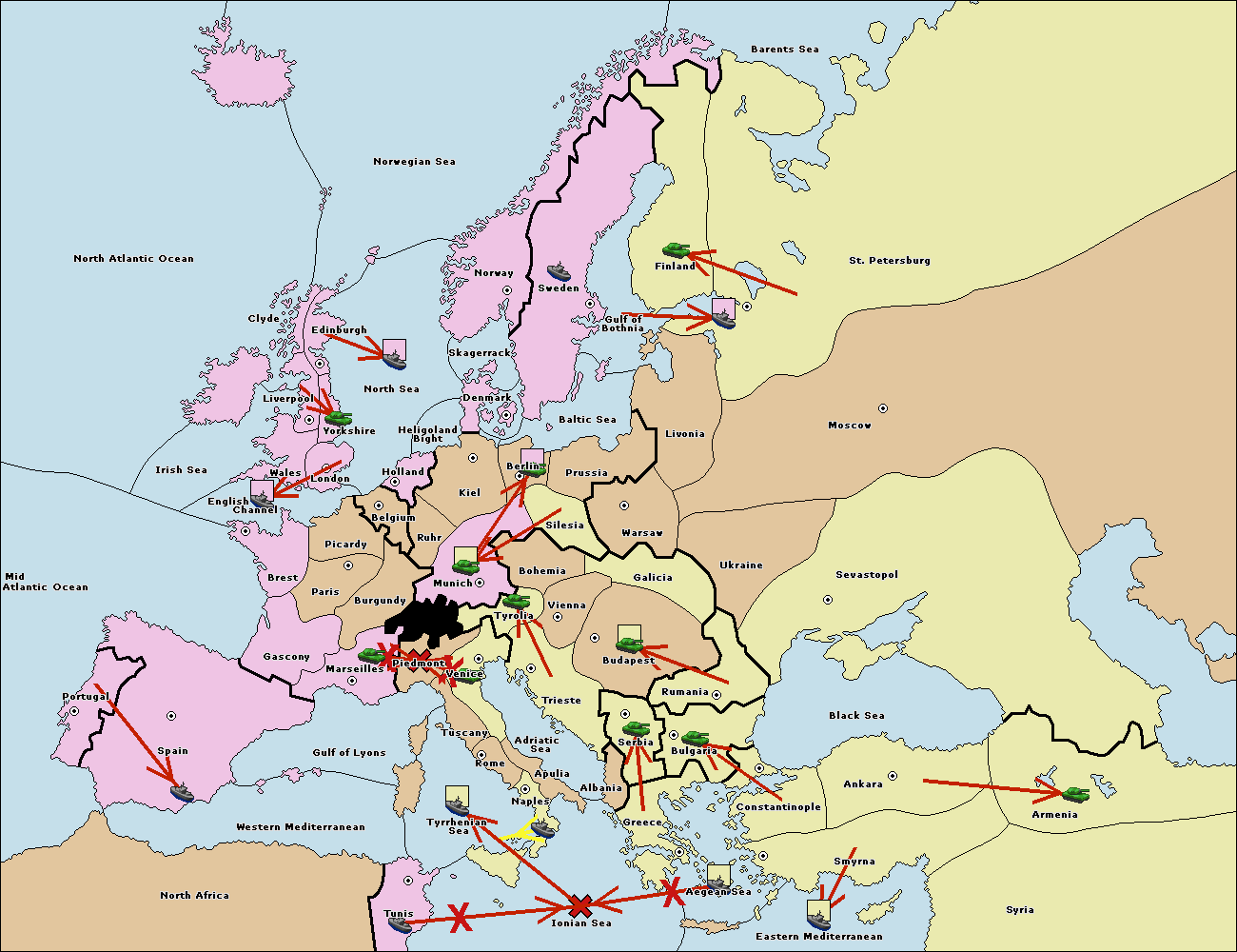 The fleet at Bulgaria (South Coast) move to Greece.