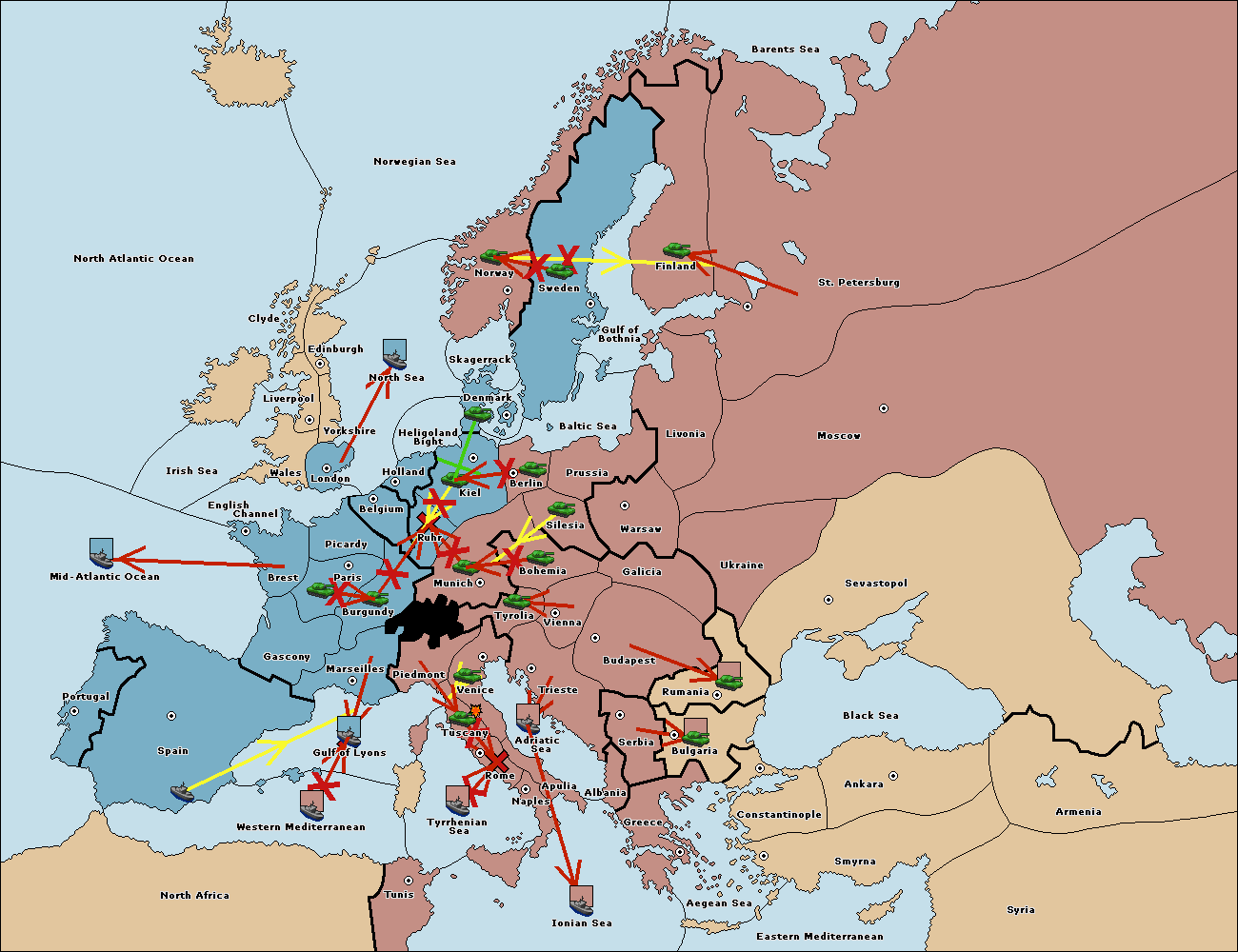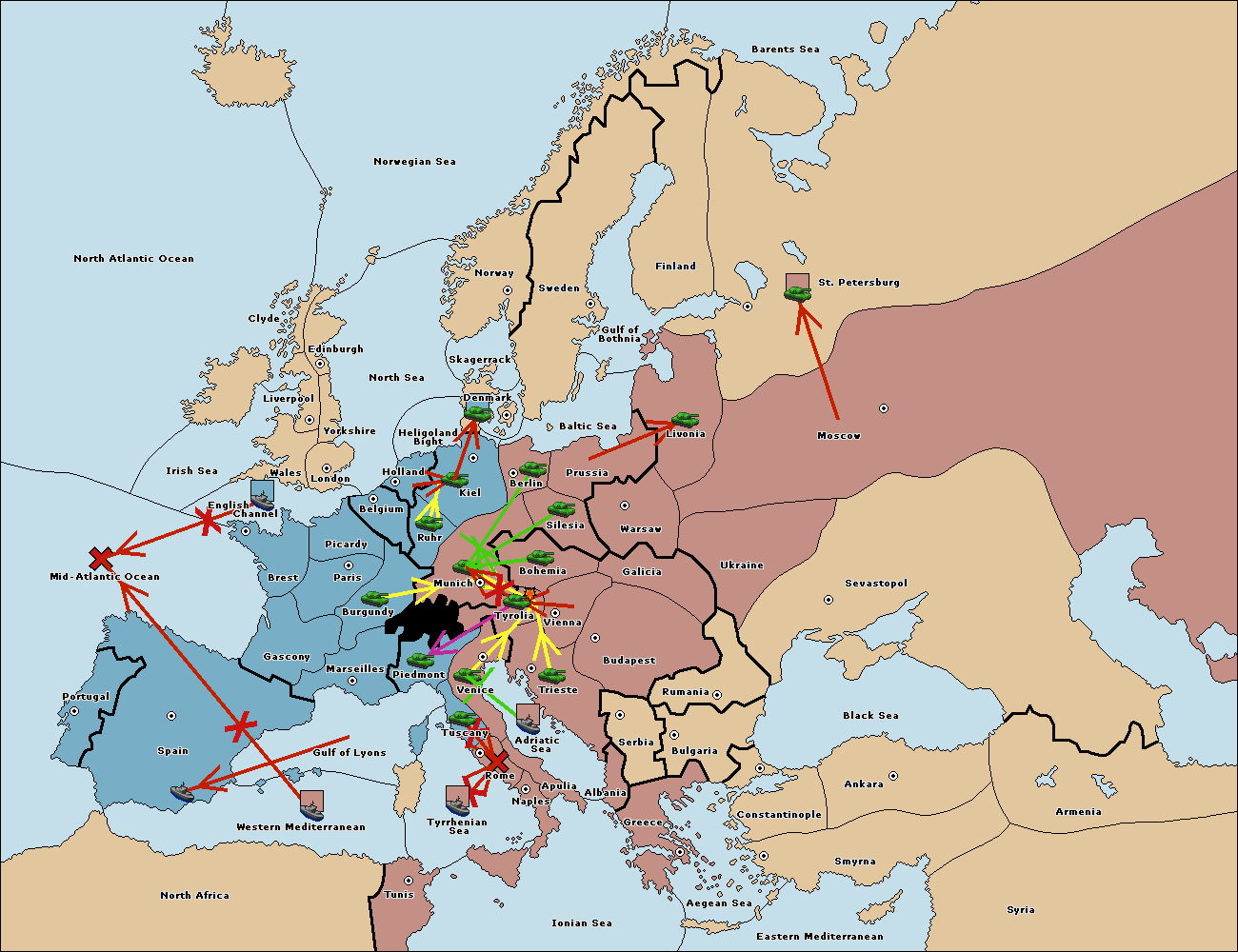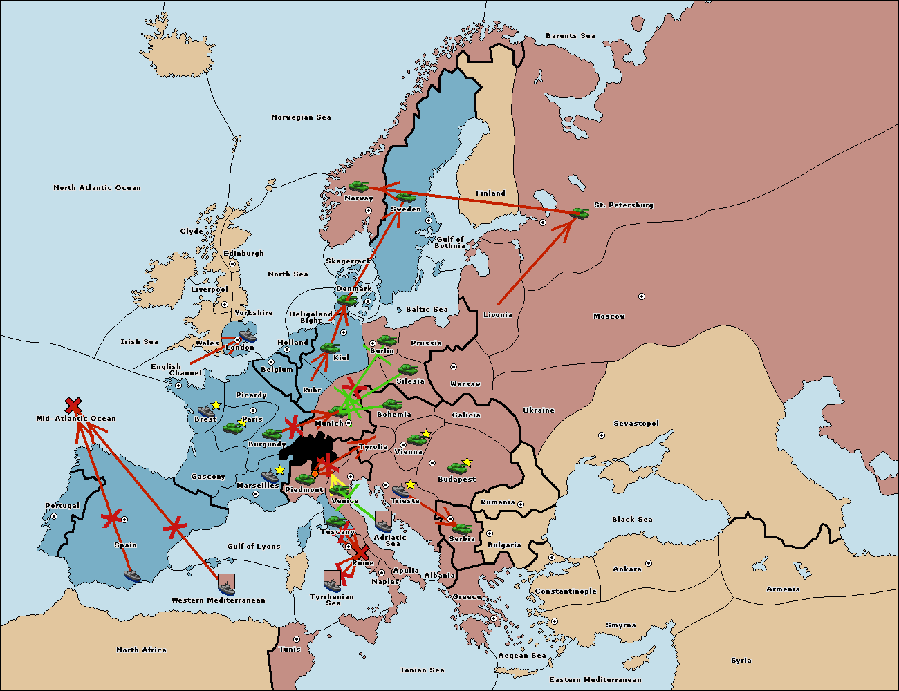 The fleet at Ionian Sea support move to Tyrrhenian Sea from Rome.