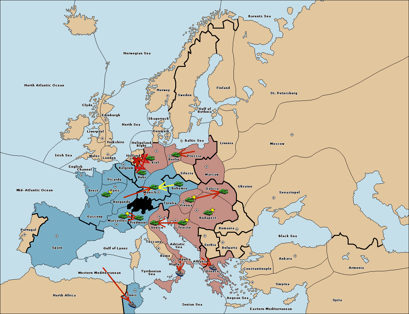 The fleet at Tyrrhenian Sea support hold to Tunis.