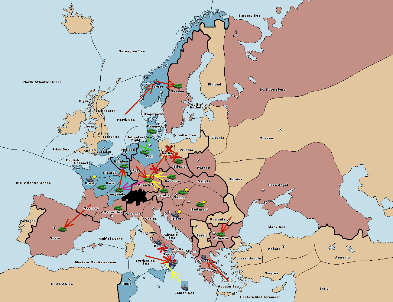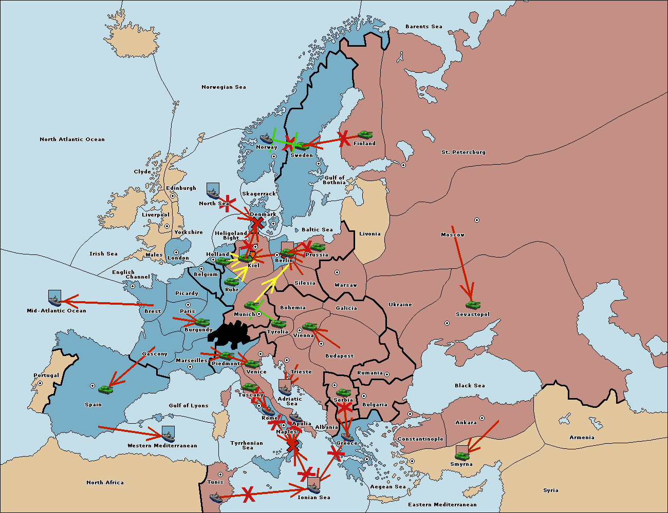 The army at Kiel support move to Munich from Tyrolia.
