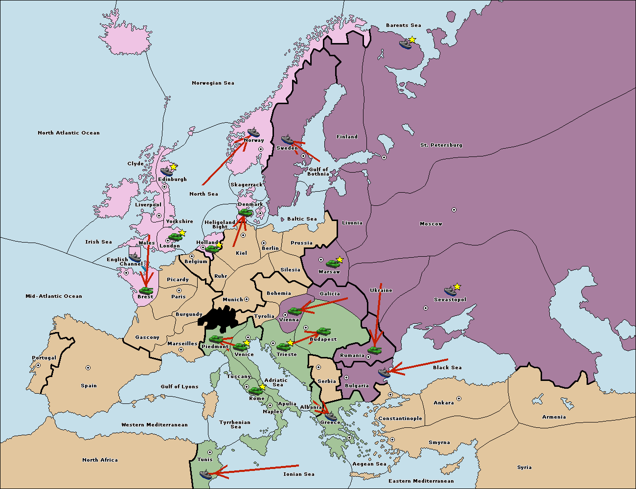 The fleet at Bulgaria (North Coast) move to Constantinople.