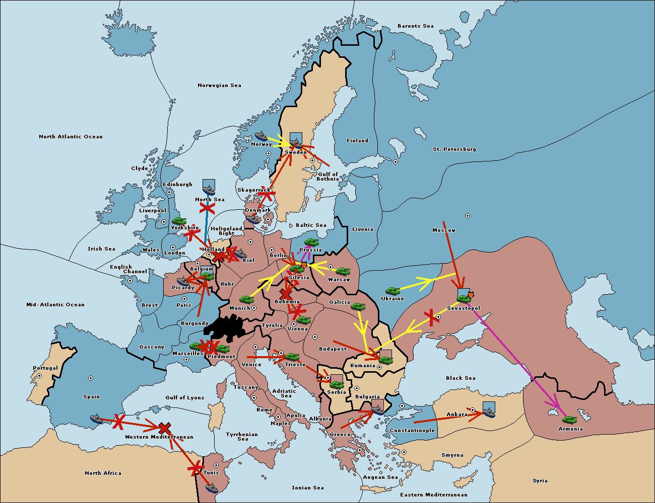 The fleet at Bulgaria (South Coast) move to Constantinople.