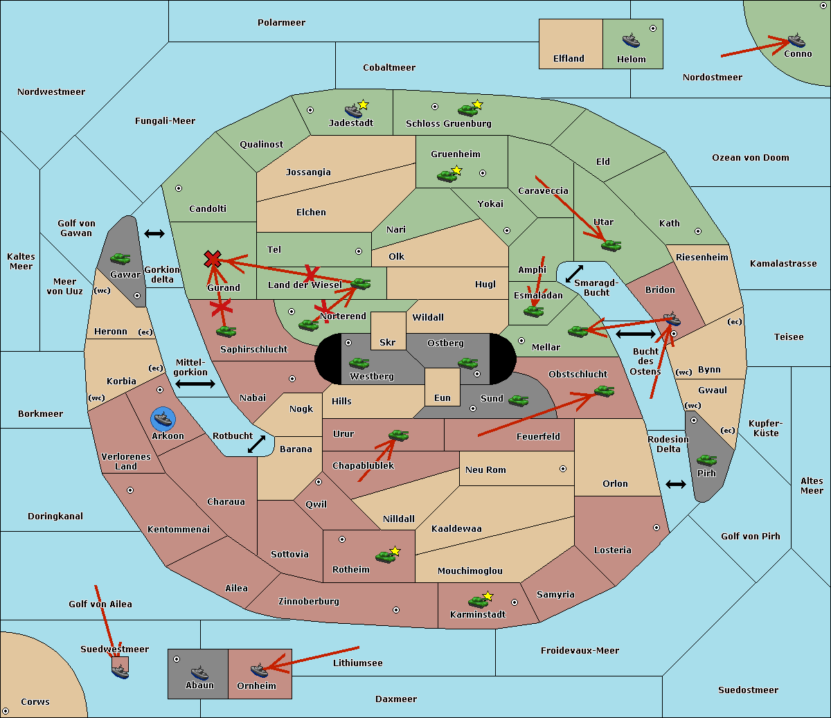 The army at Verlorenes Land move to Arkoon.