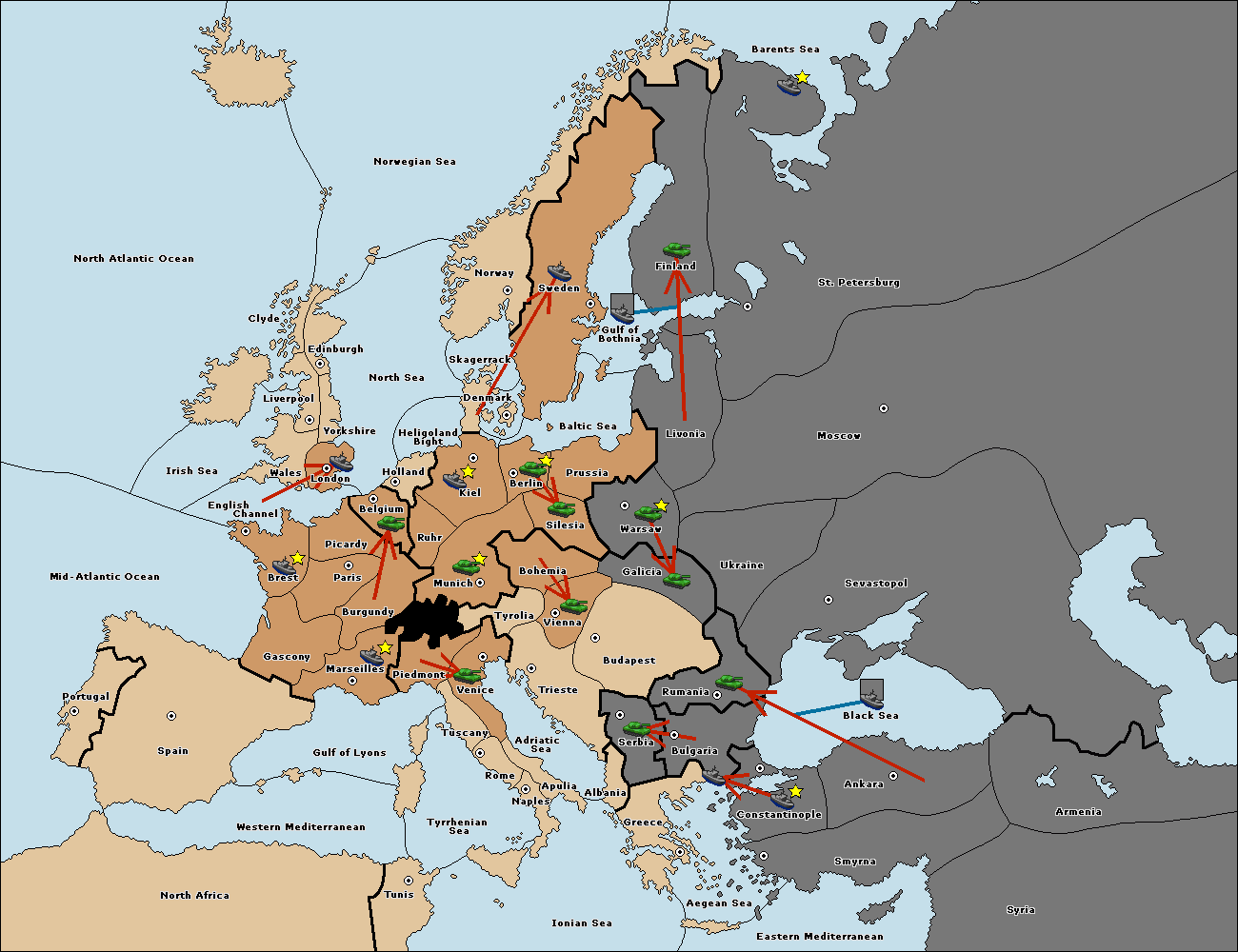 The fleet at Bulgaria (South Coast) move to Greece.