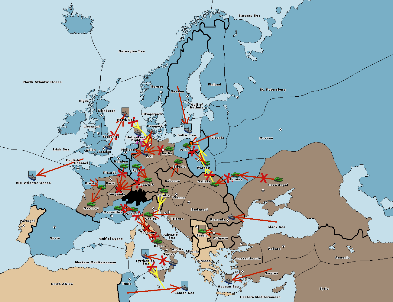 The fleet at Mid-Atlantic Ocean move to Western Mediterranean.