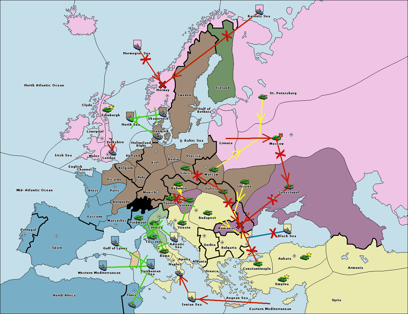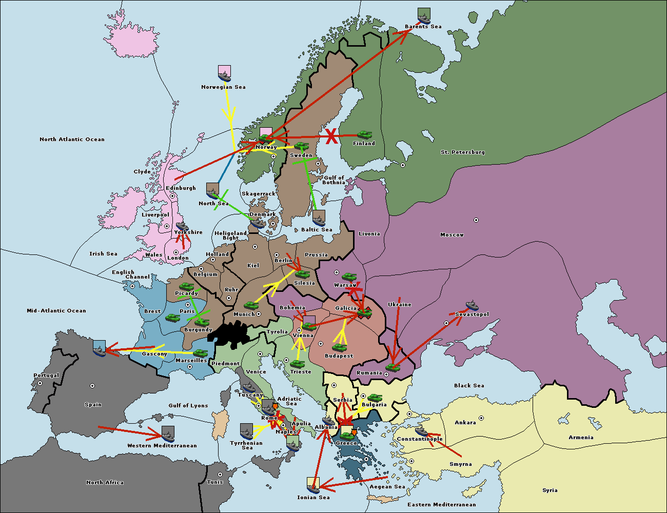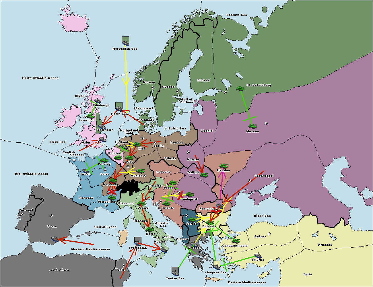 The fleet at Bulgaria (North Coast) move to Rumania.
