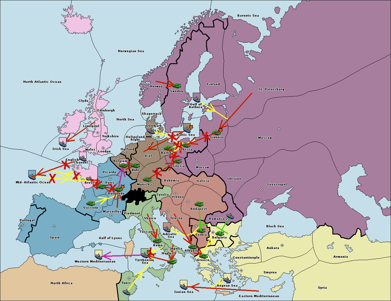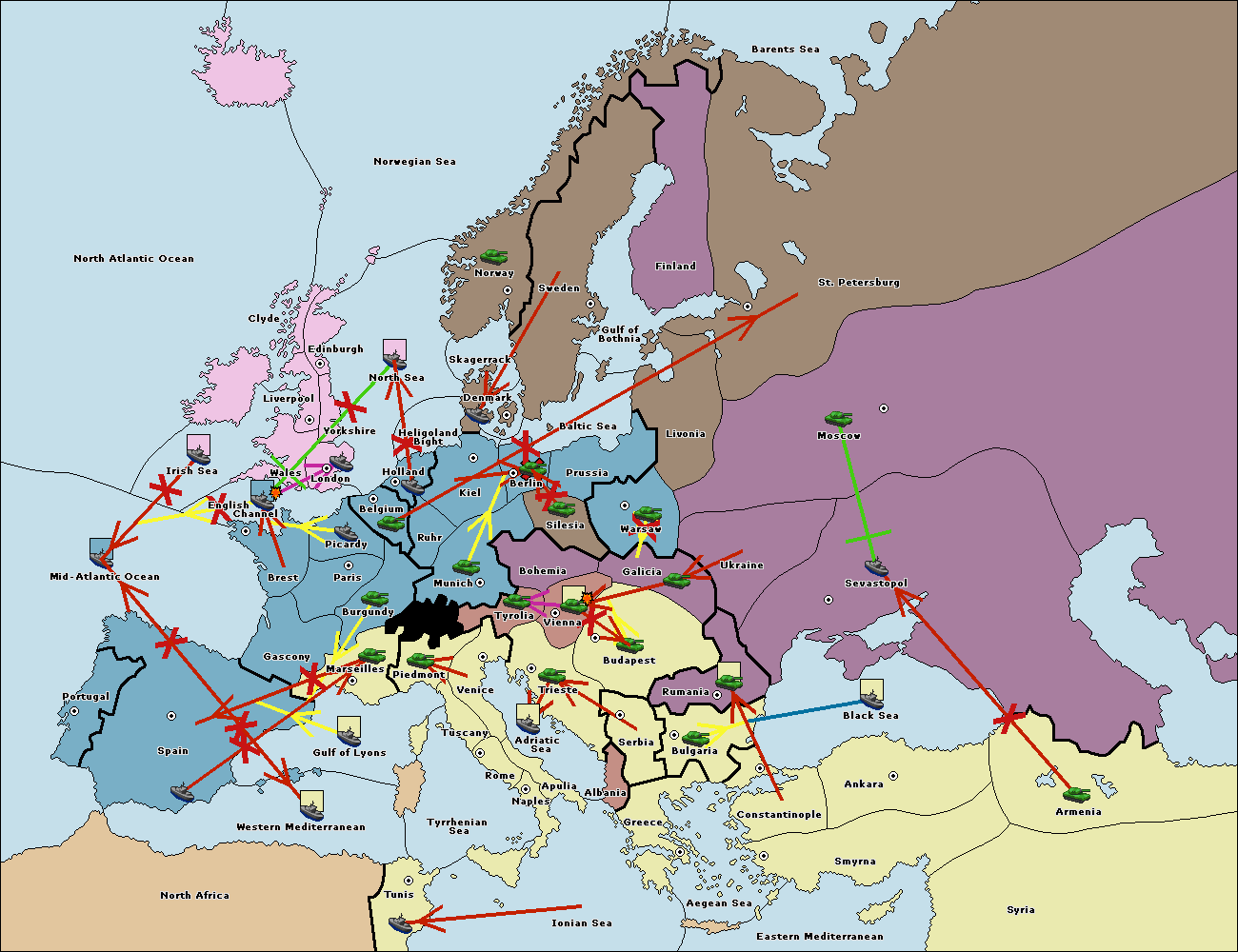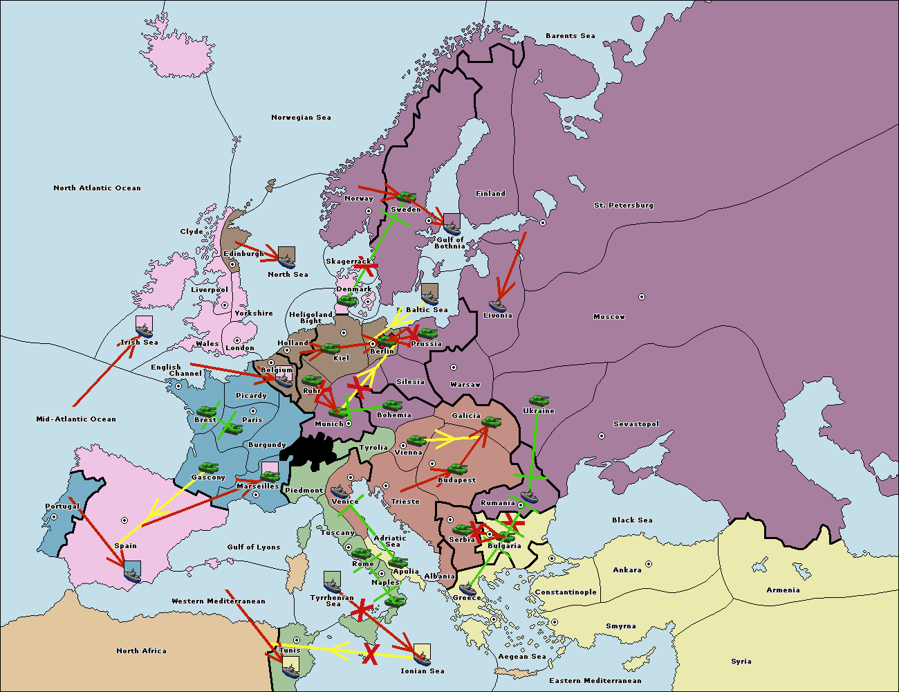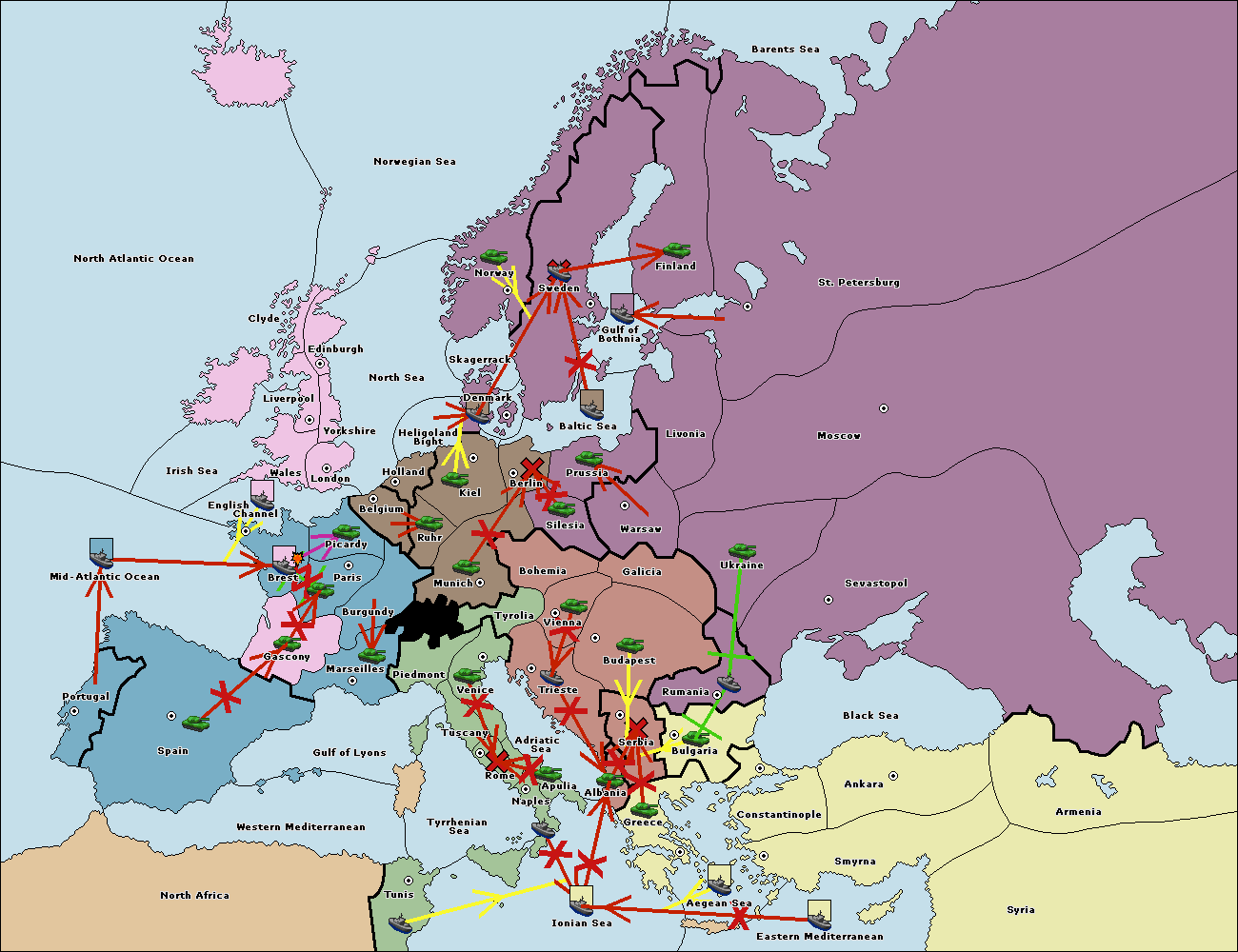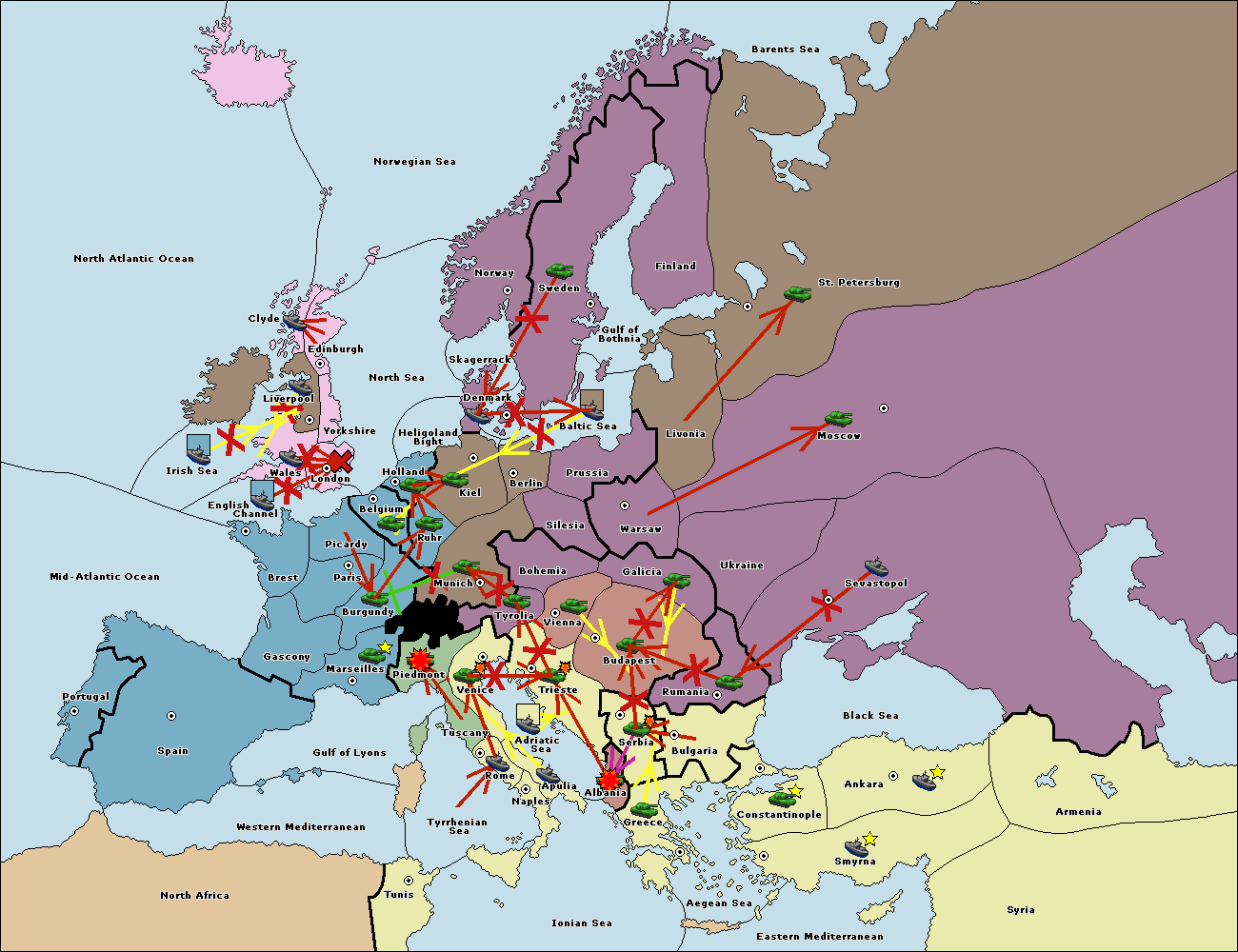 The fleet at Holland support move to Kiel from Berlin.