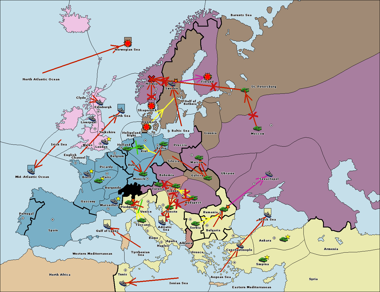 The fleet at Western Mediterranean move to Tyrrhenian Sea.