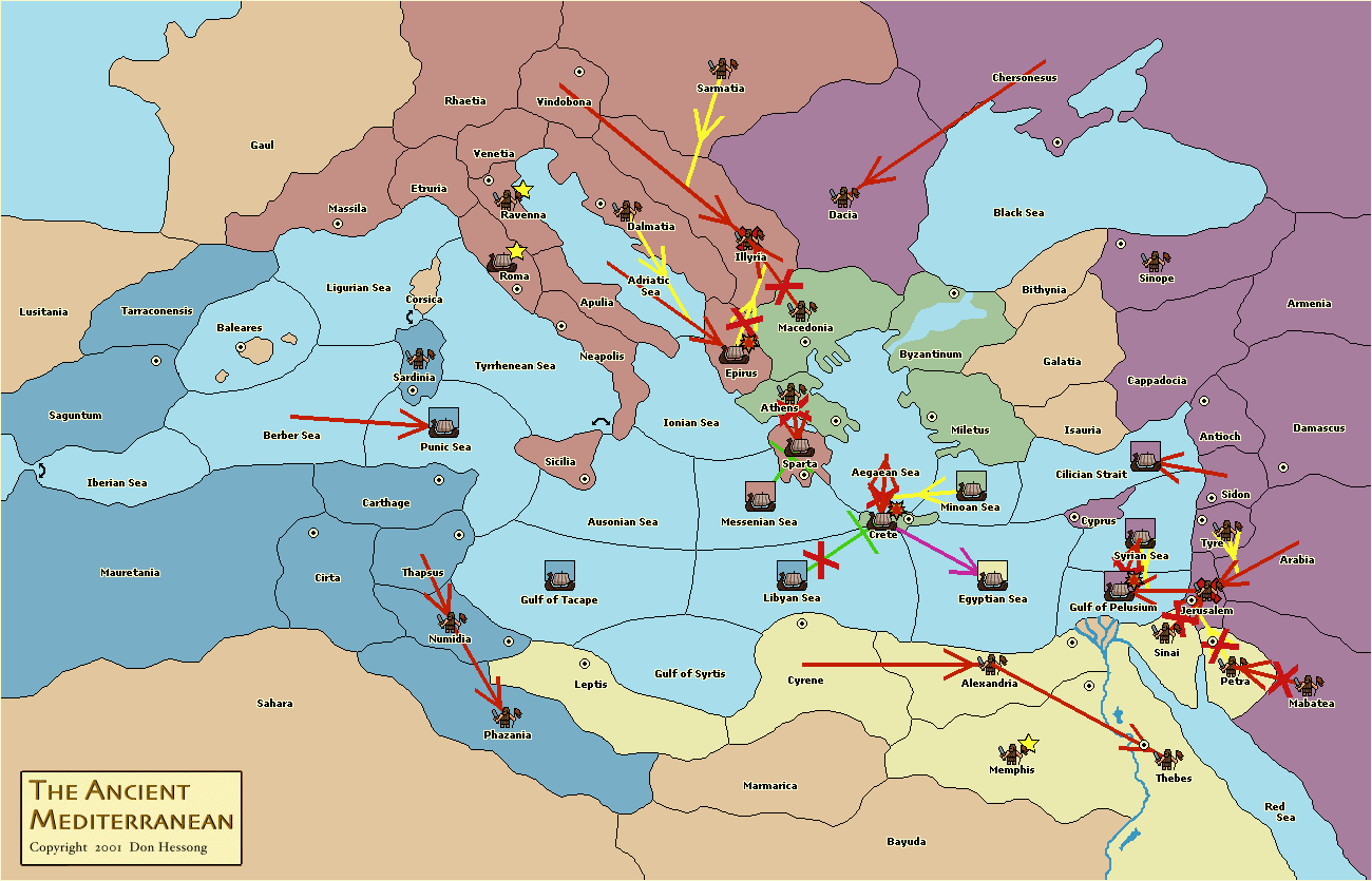 The fleet at Libyan Sea support move to Crete from Messenian Sea.