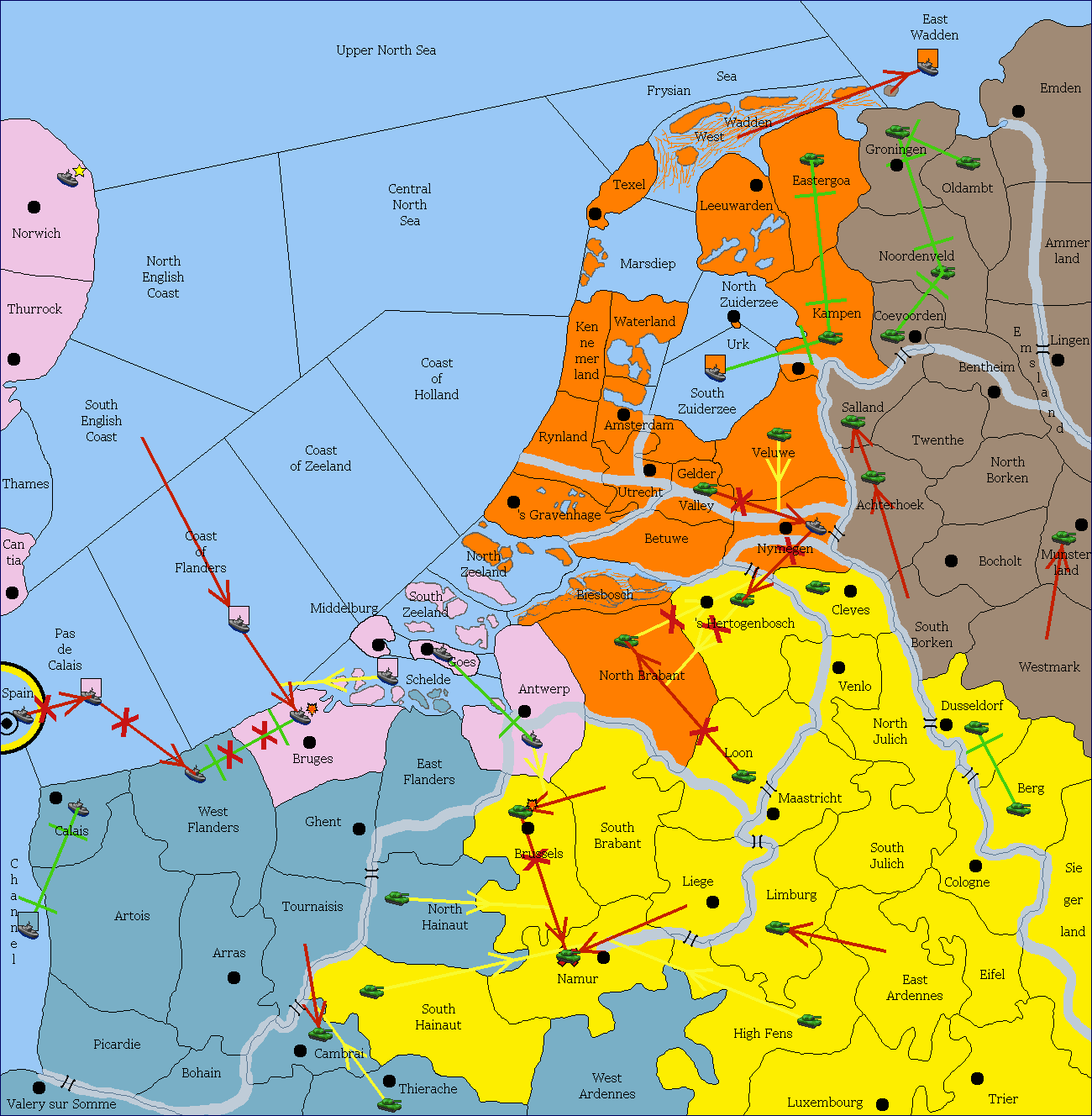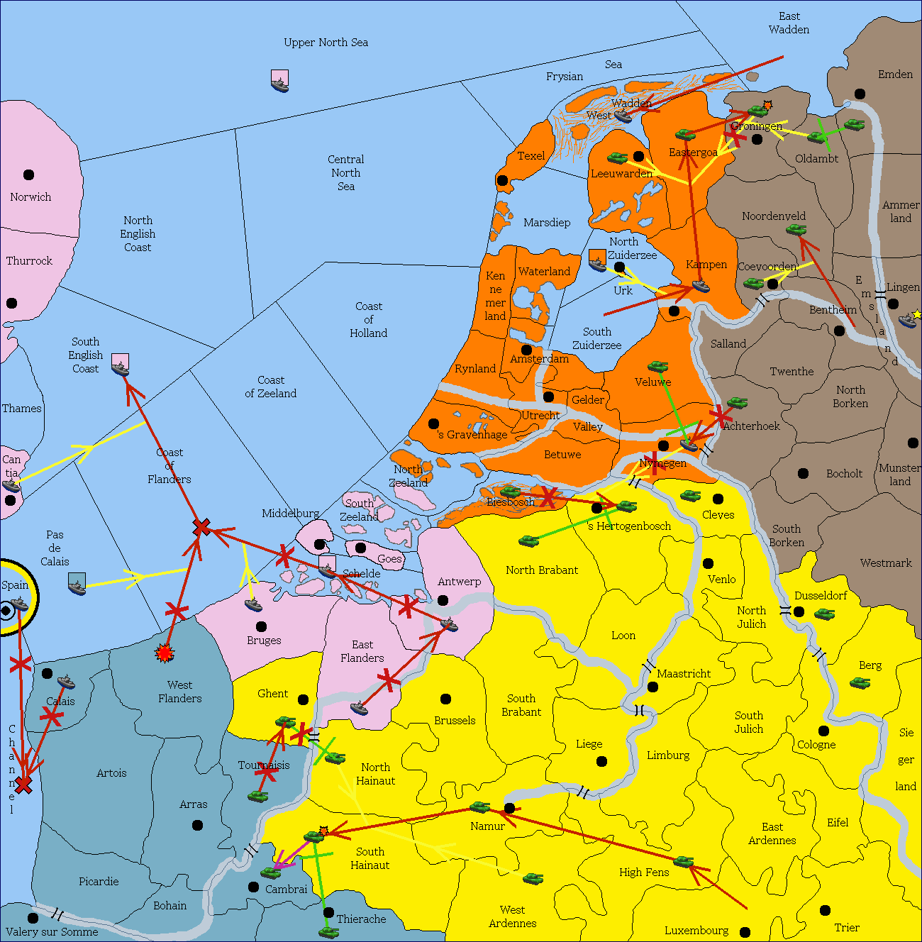 The fleet at Schelde support move to Bruges from Coast of Flanders.