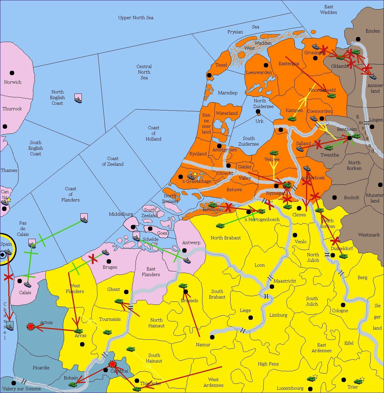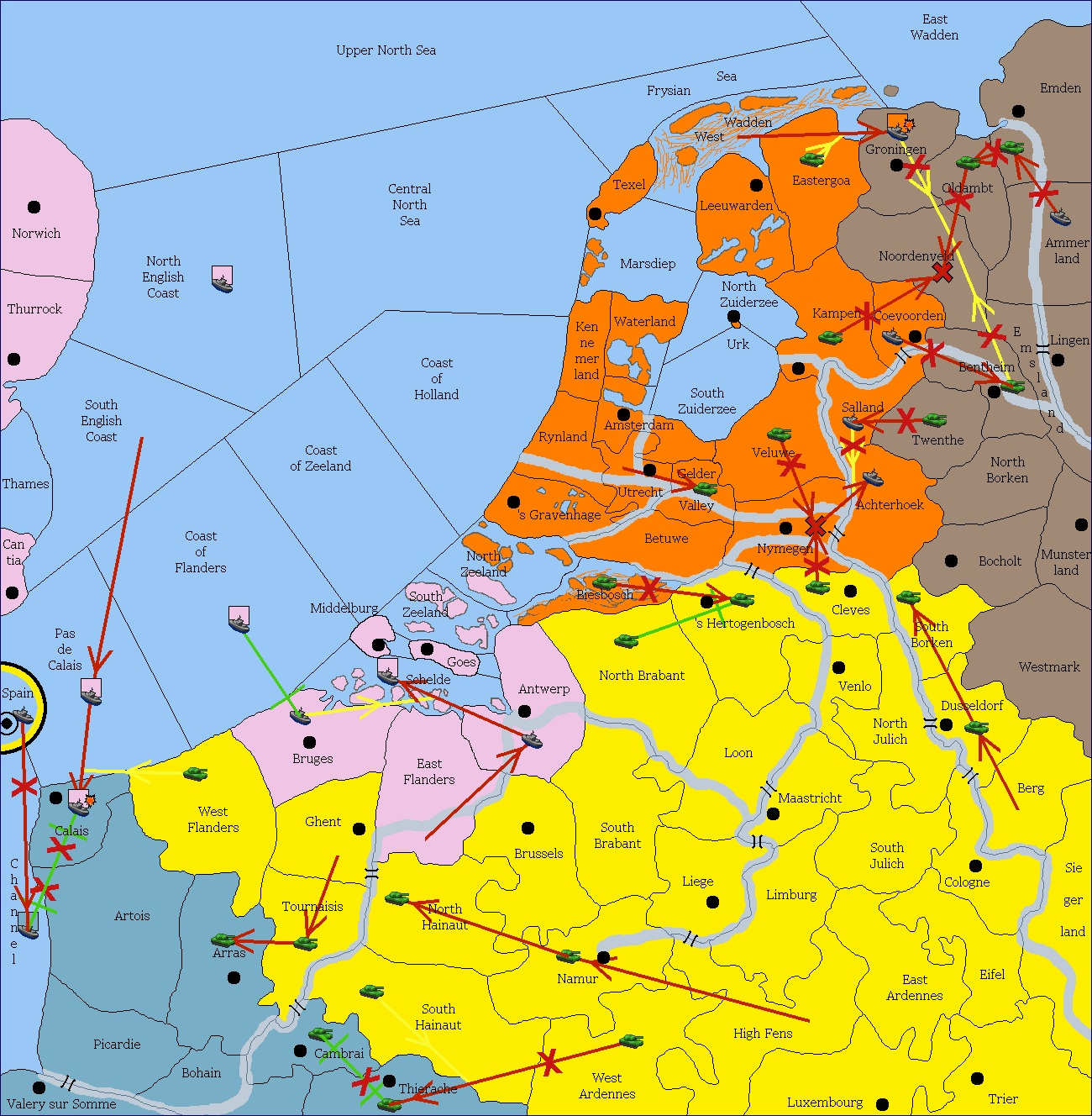 The fleet at North Zuiderzee support move to Kampen from South Zuiderzee.