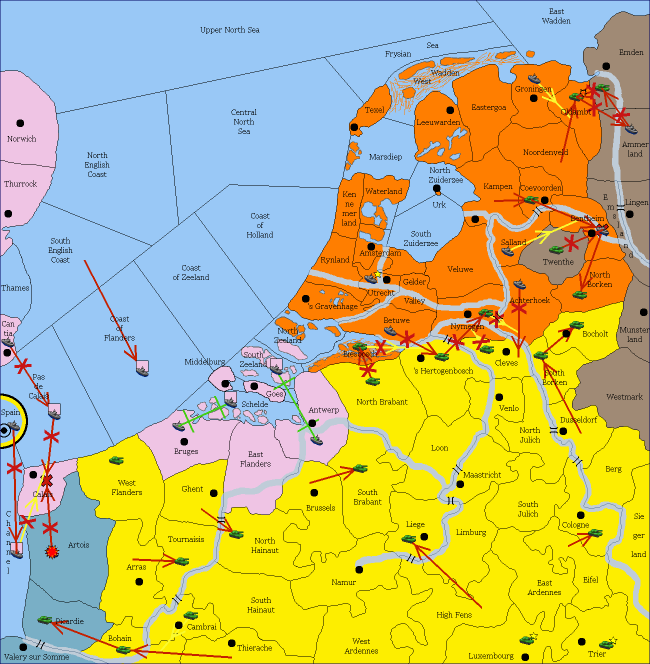 The fleet at Schelde support hold to Coast of Flanders.