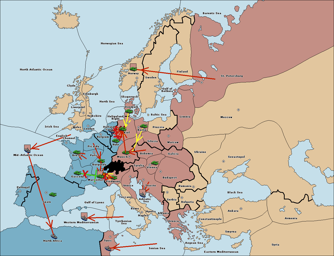 The fleet at Mid-Atlantic Ocean move to Western Mediterranean.