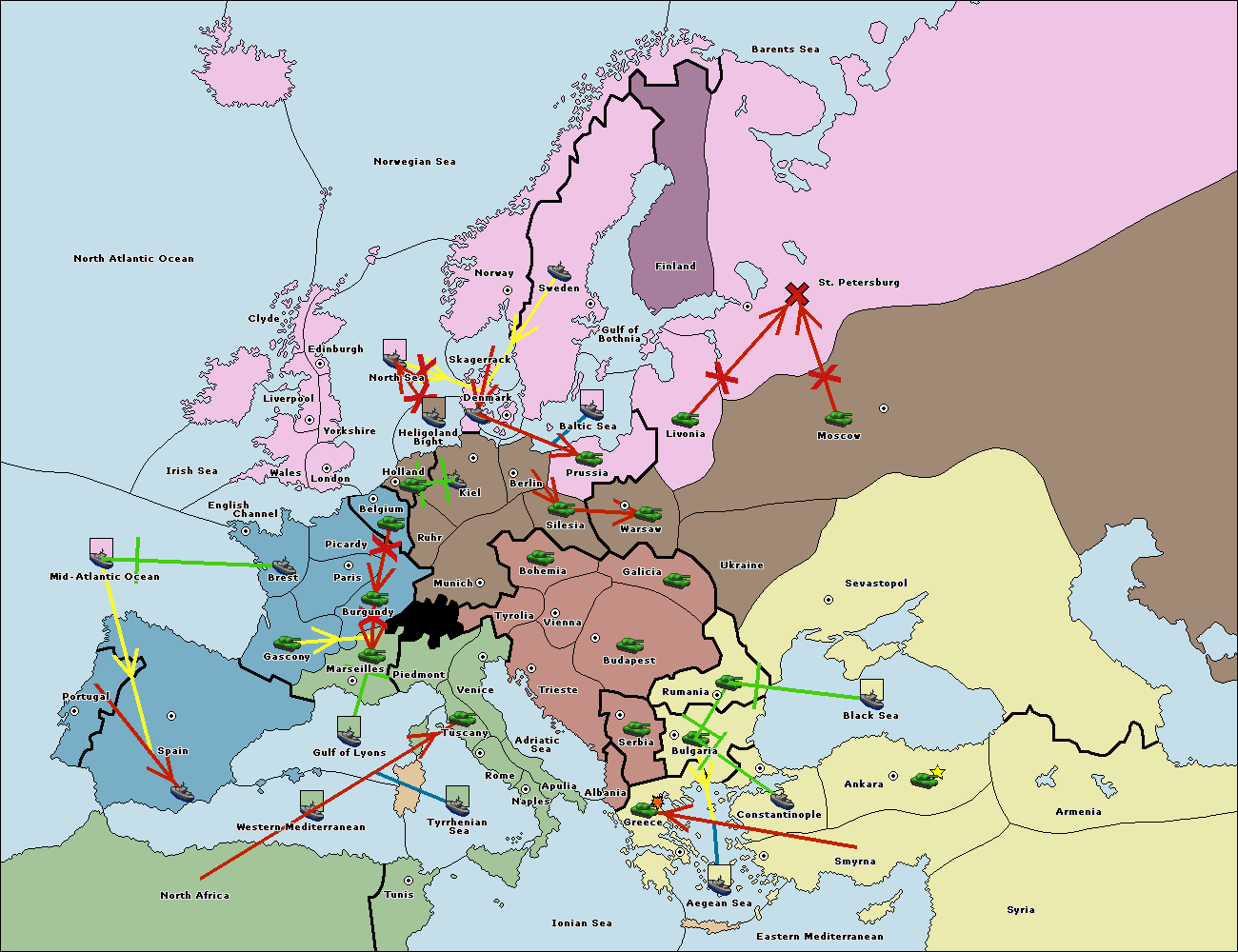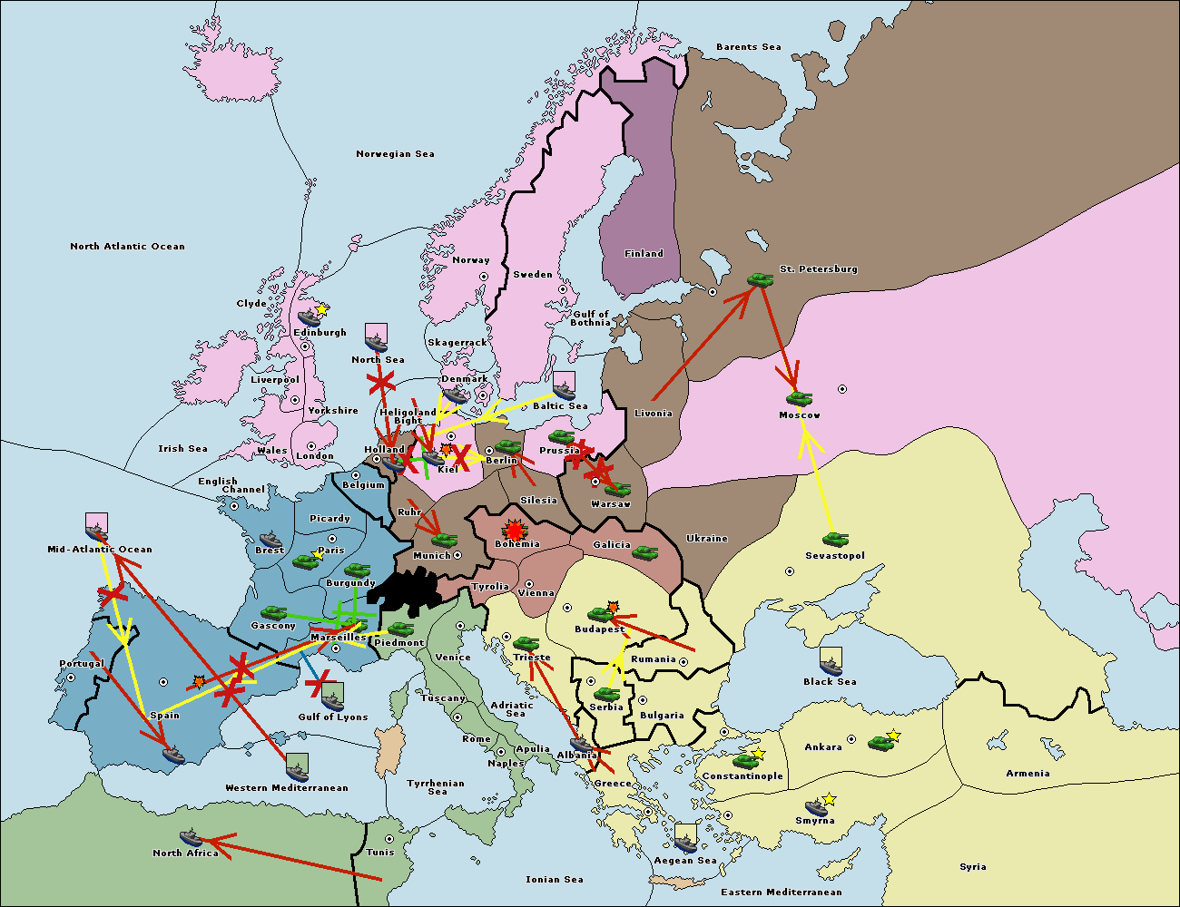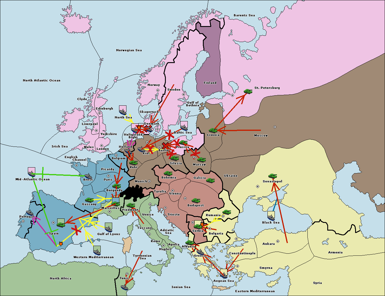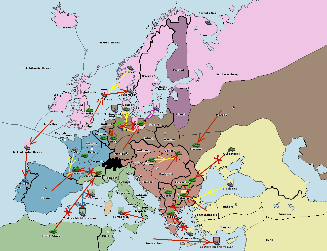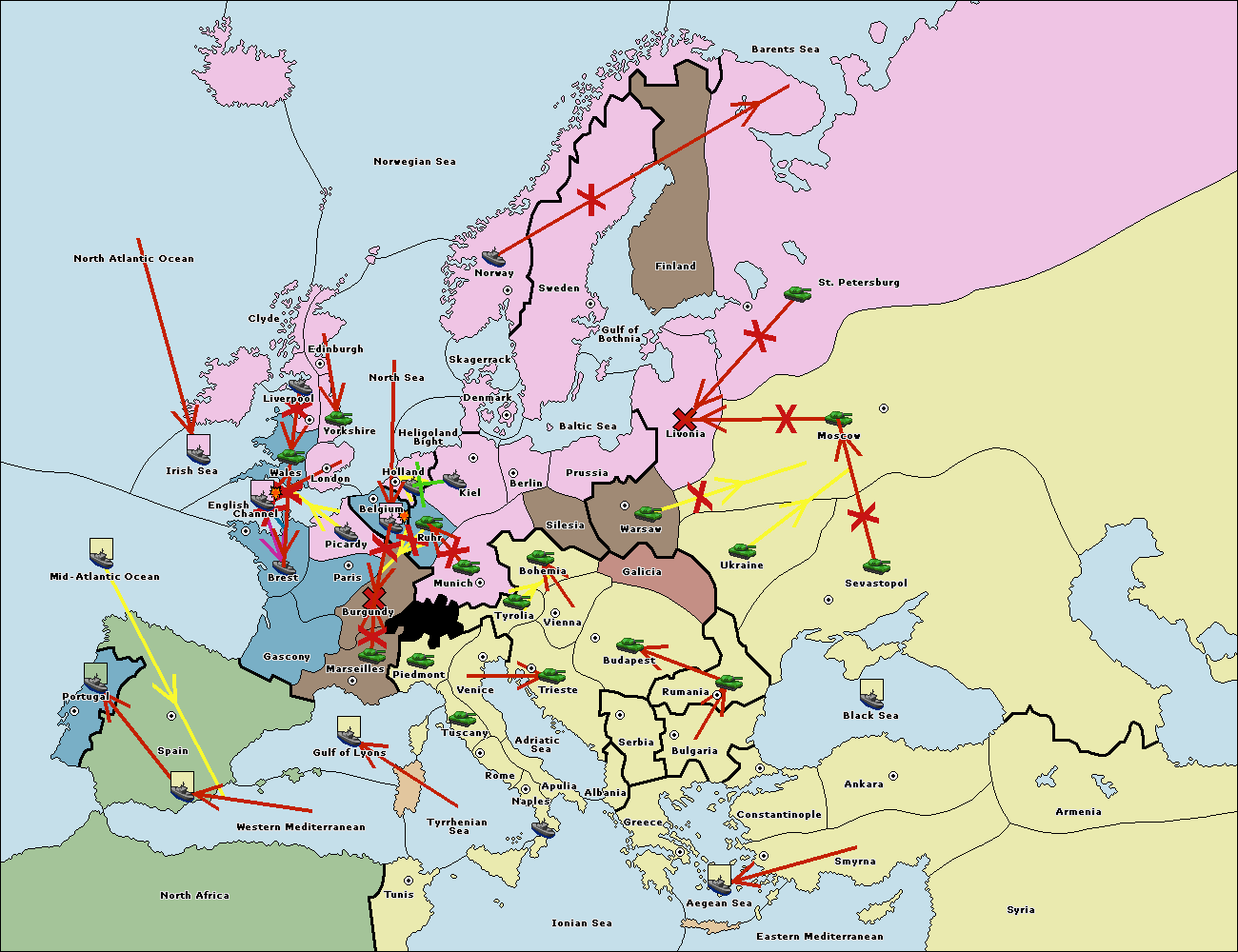 The fleet at Mid-Atlantic Ocean move to Western Mediterranean.