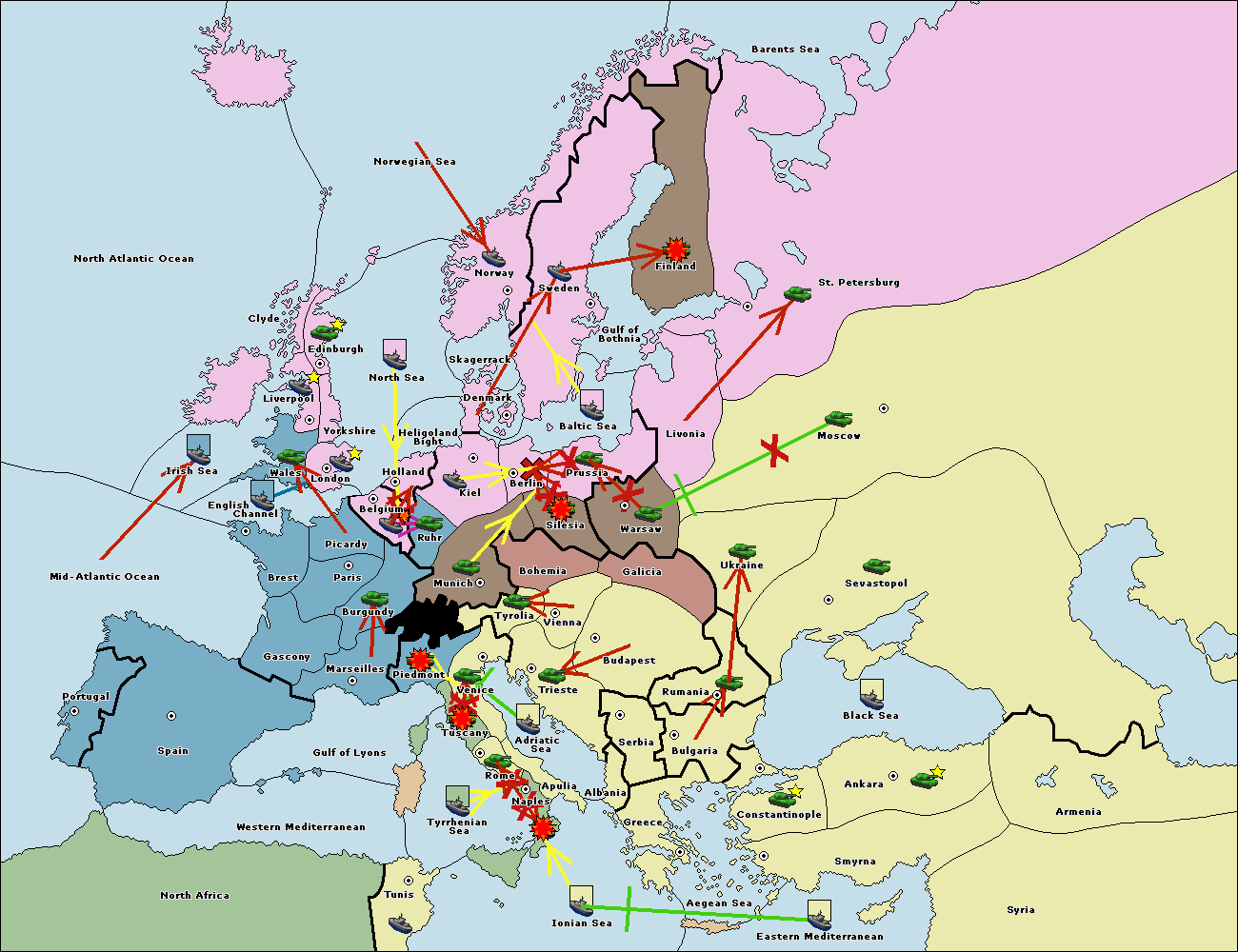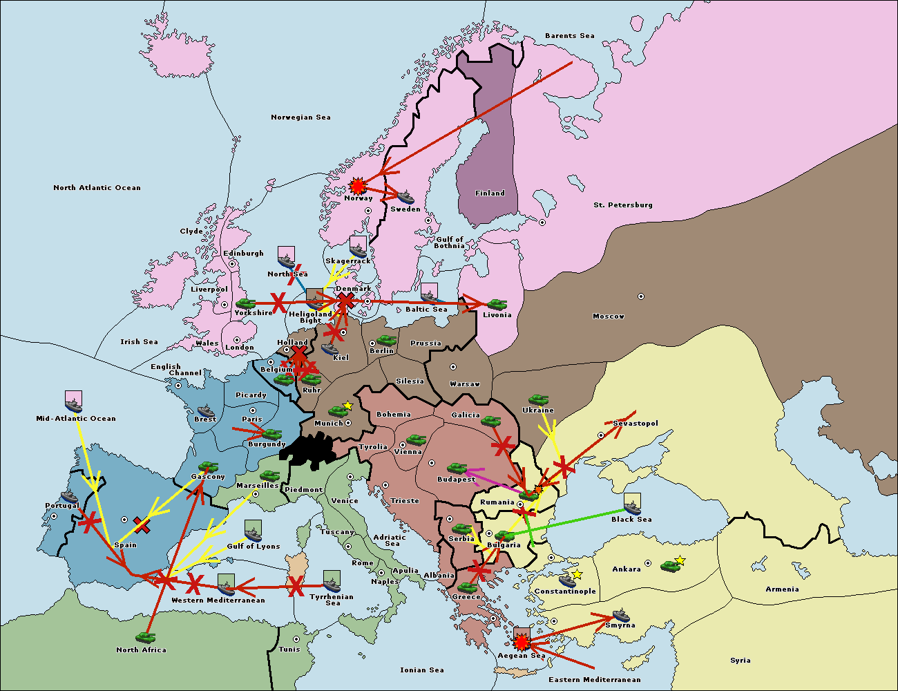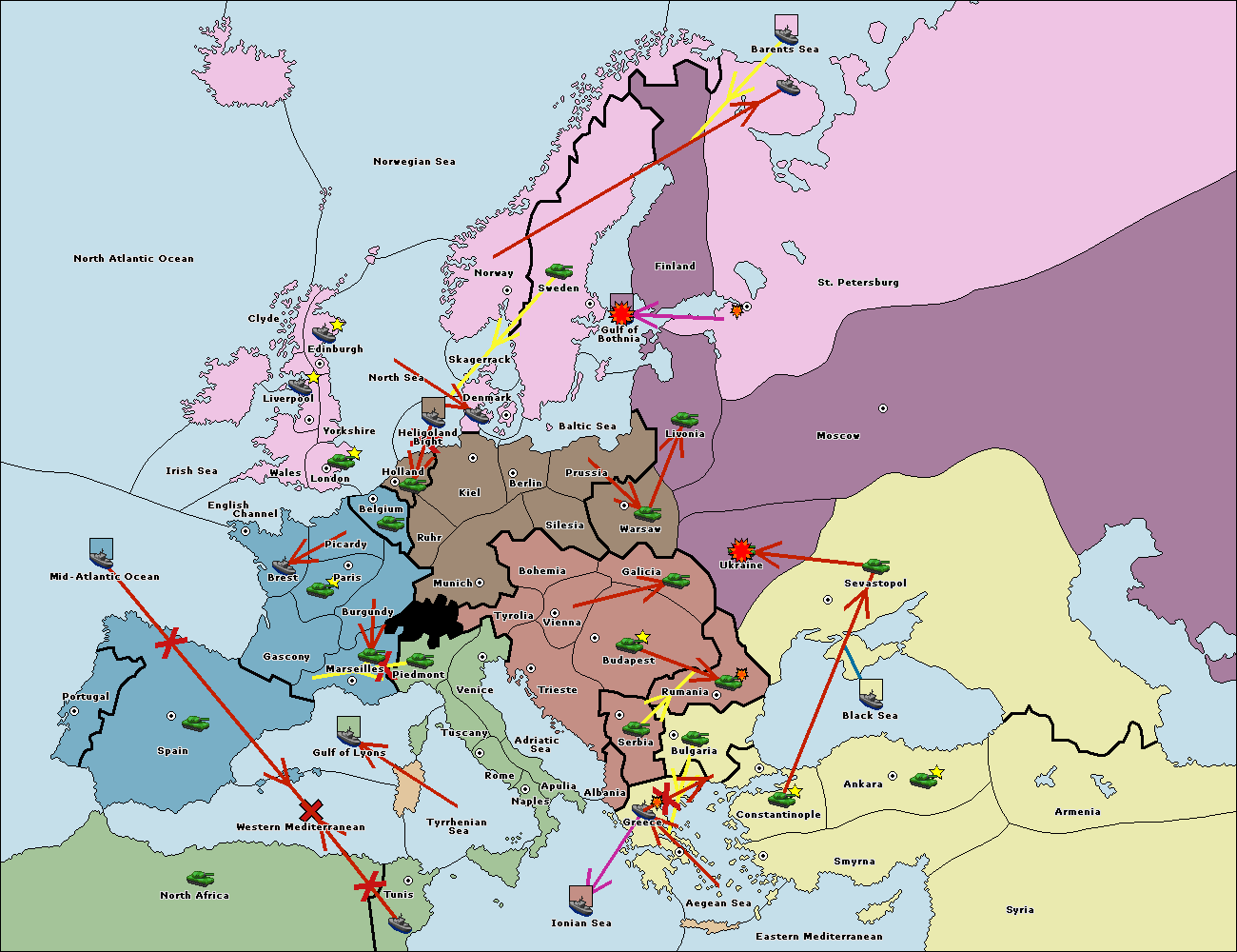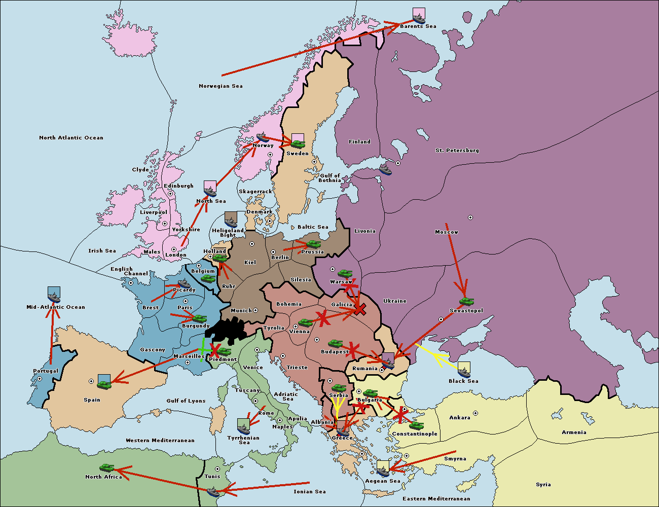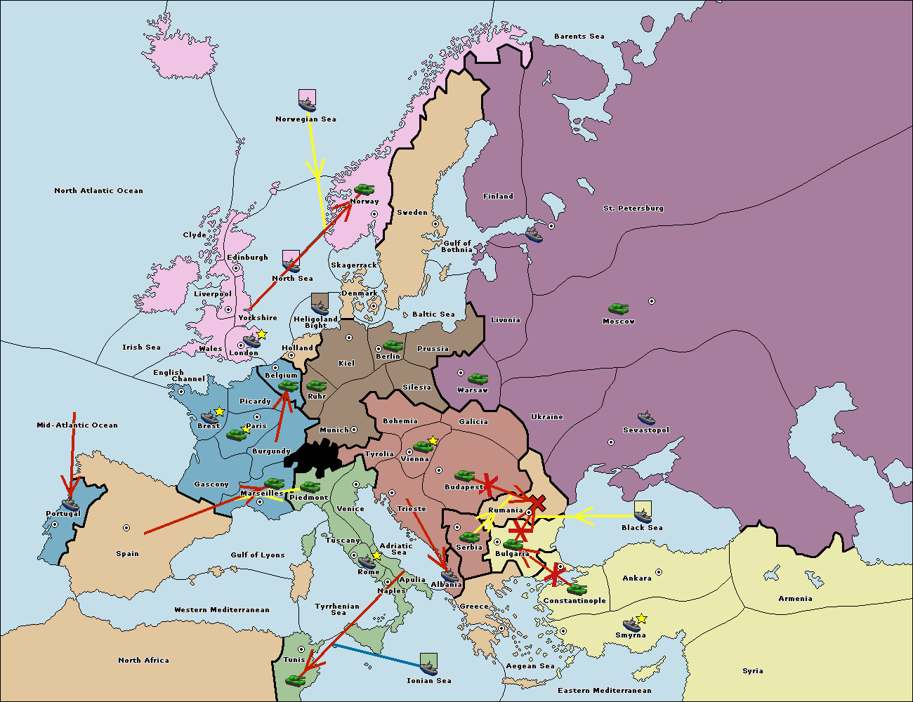 The fleet at Mid-Atlantic Ocean move to Western Mediterranean.