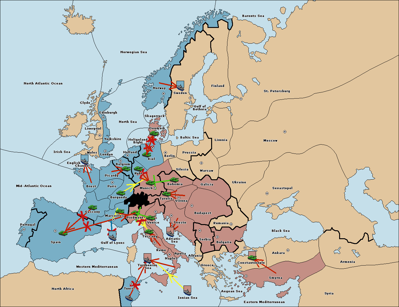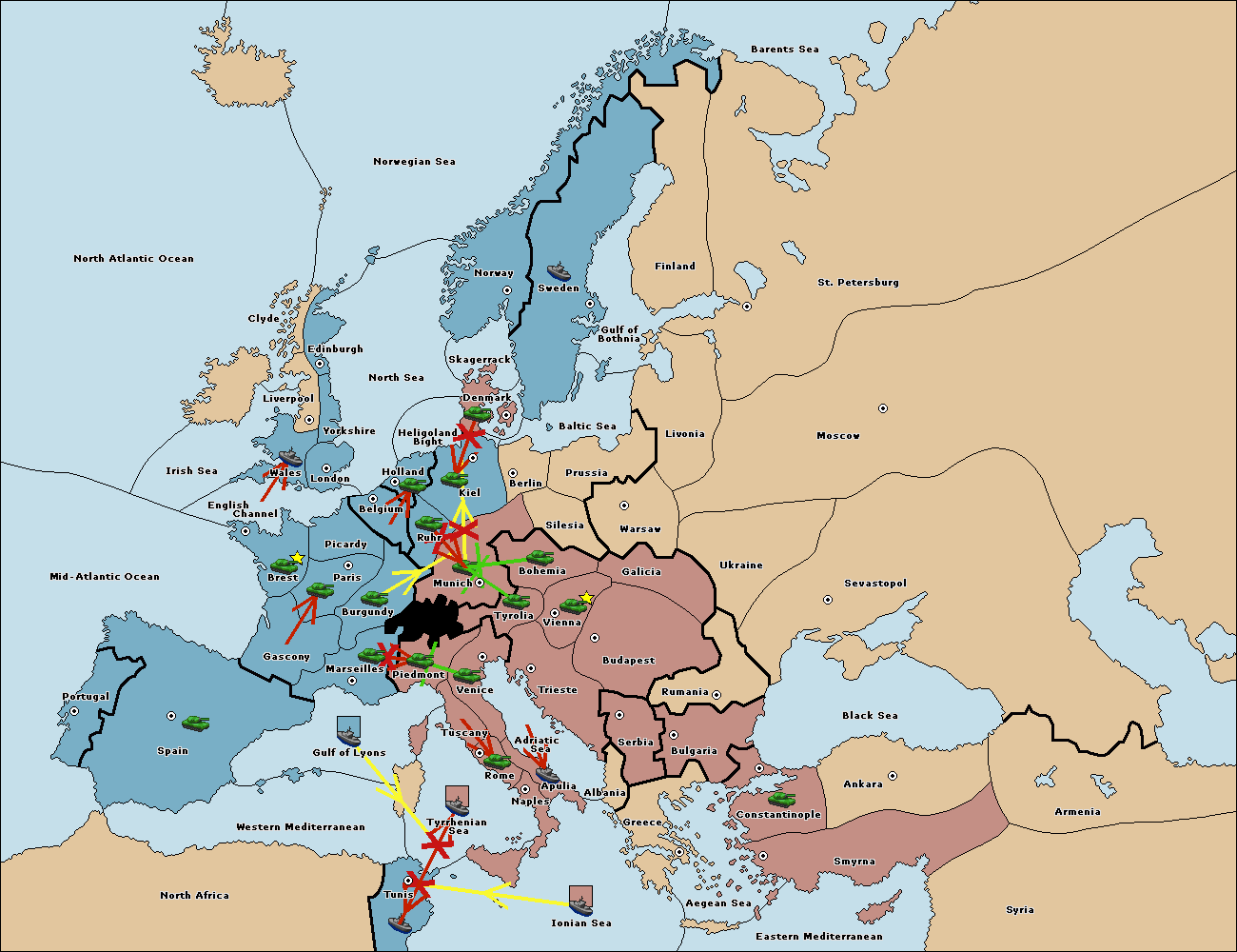 The army at Kiel support move to Munich from Tyrolia.