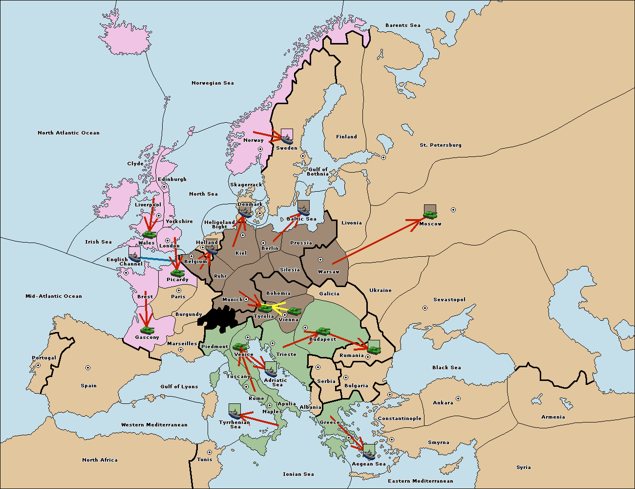 The army at Tyrolia move to Trieste.