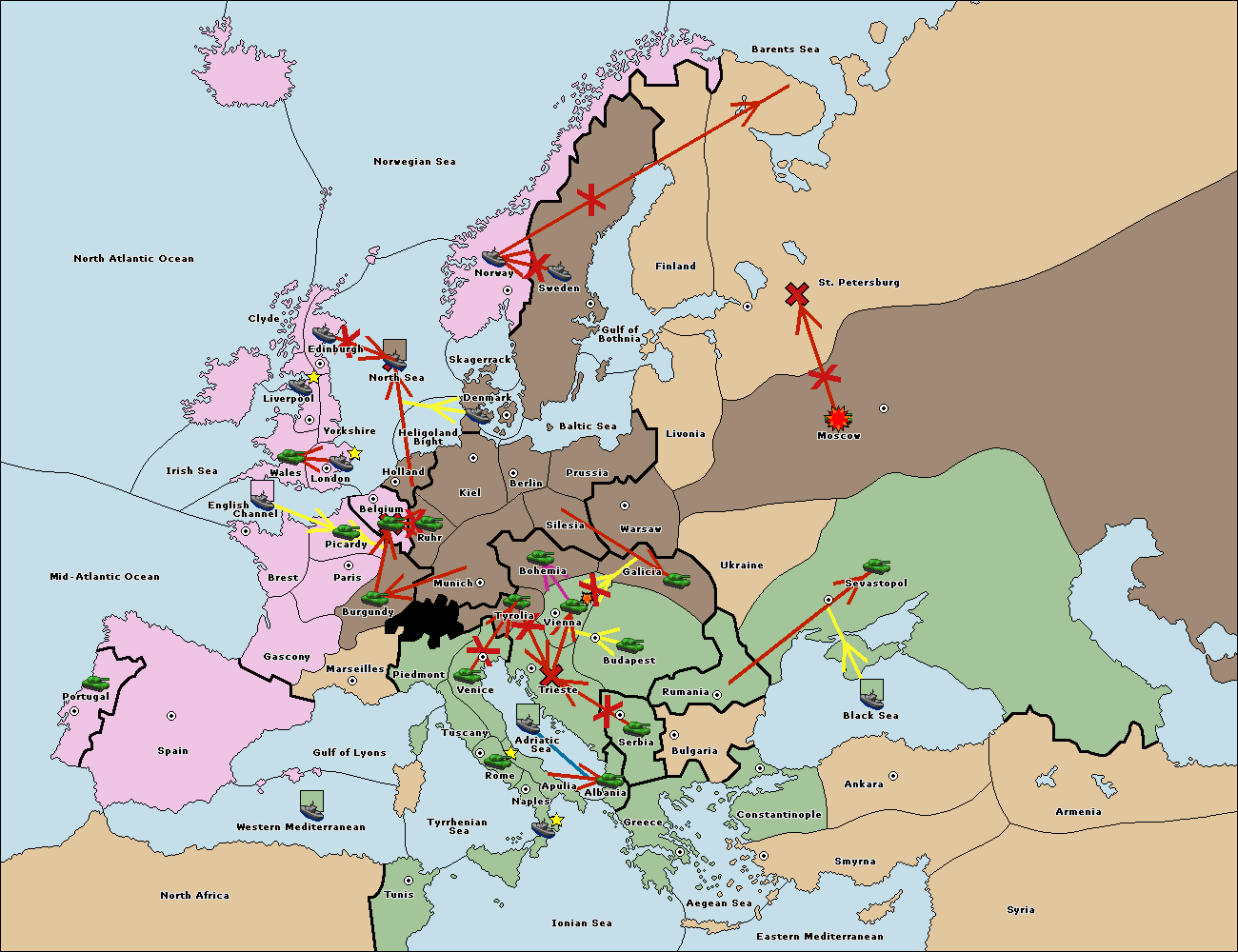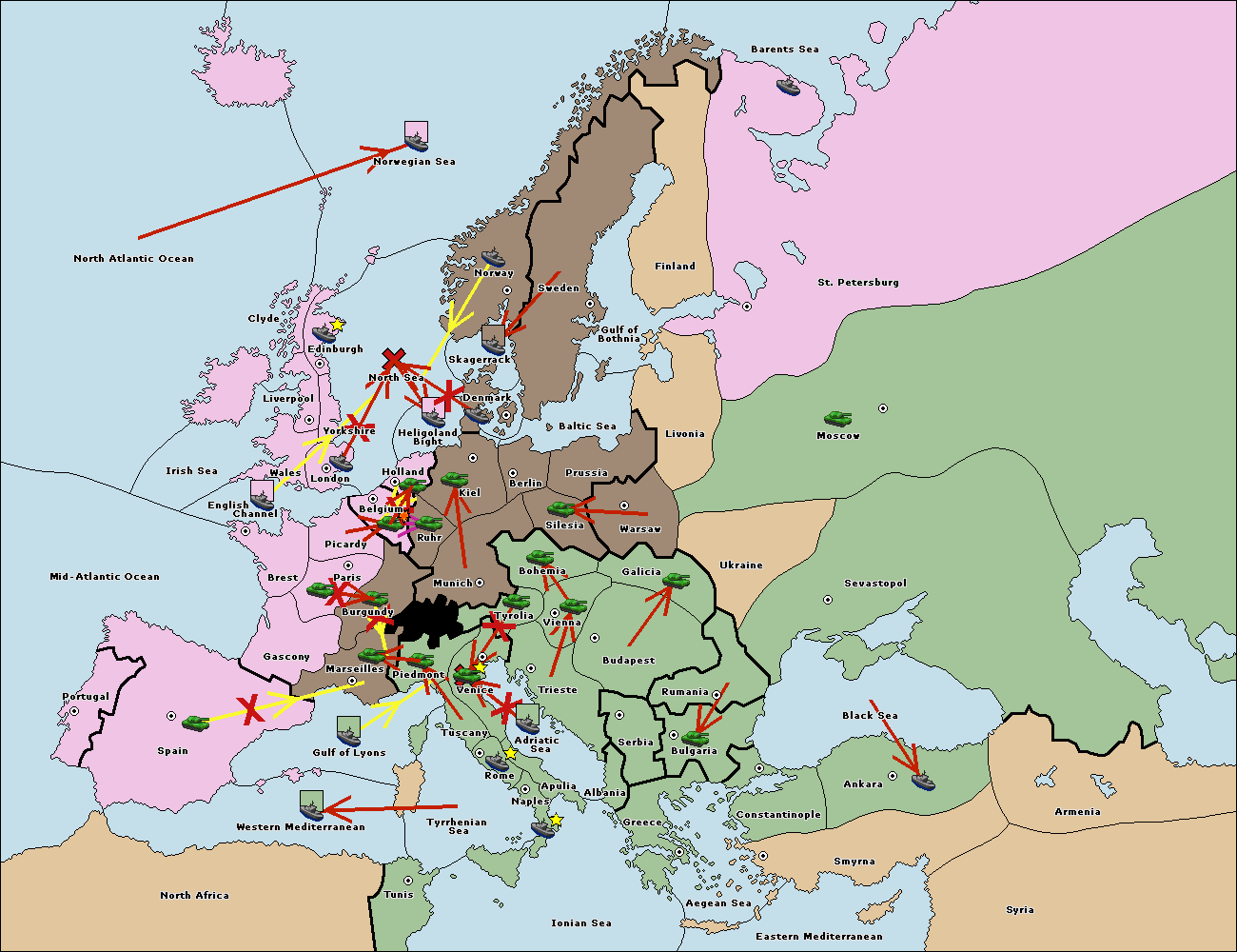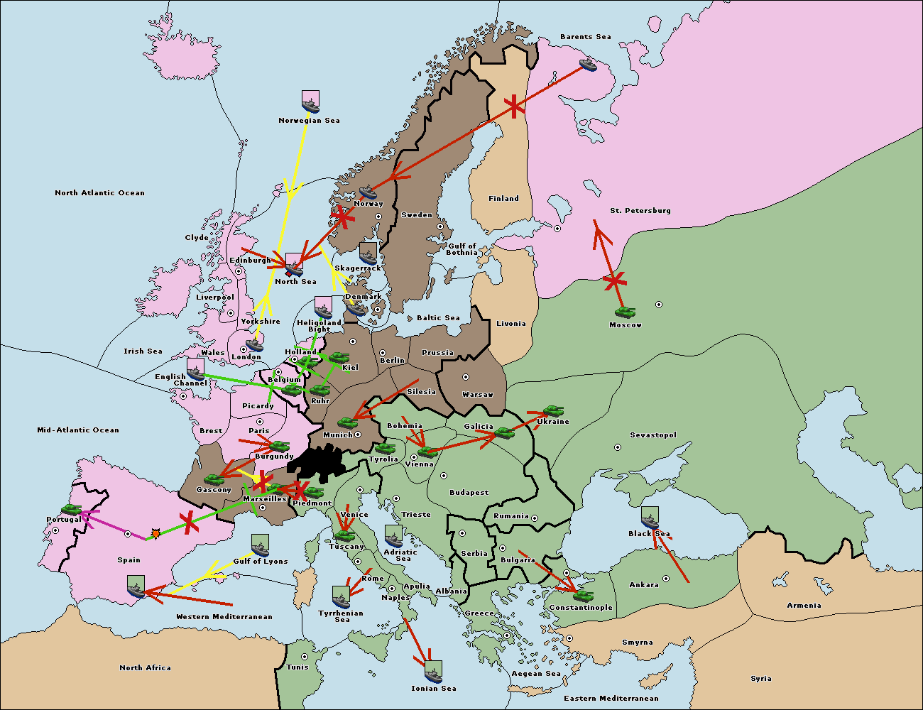 The fleet at Spain (South Coast) support move to Marseilles from Piedmont.
