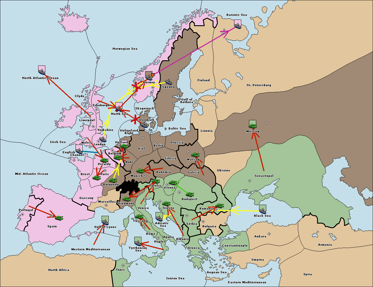 The fleet at Sweden support hold to Norway.