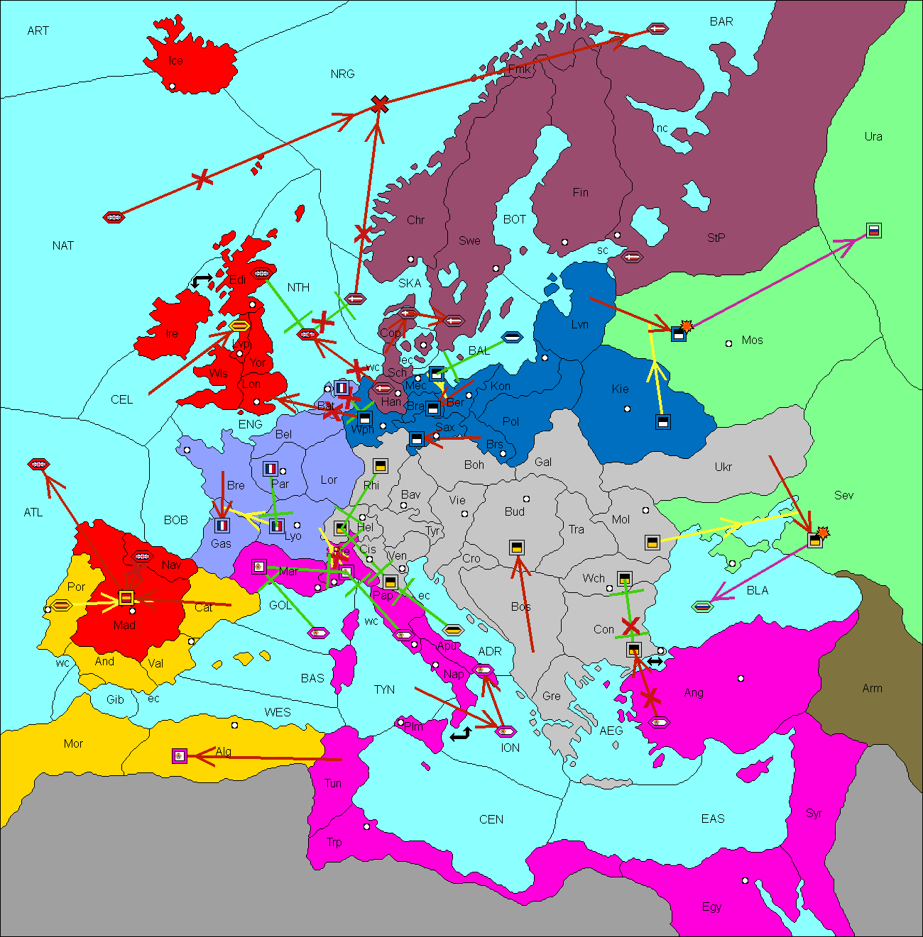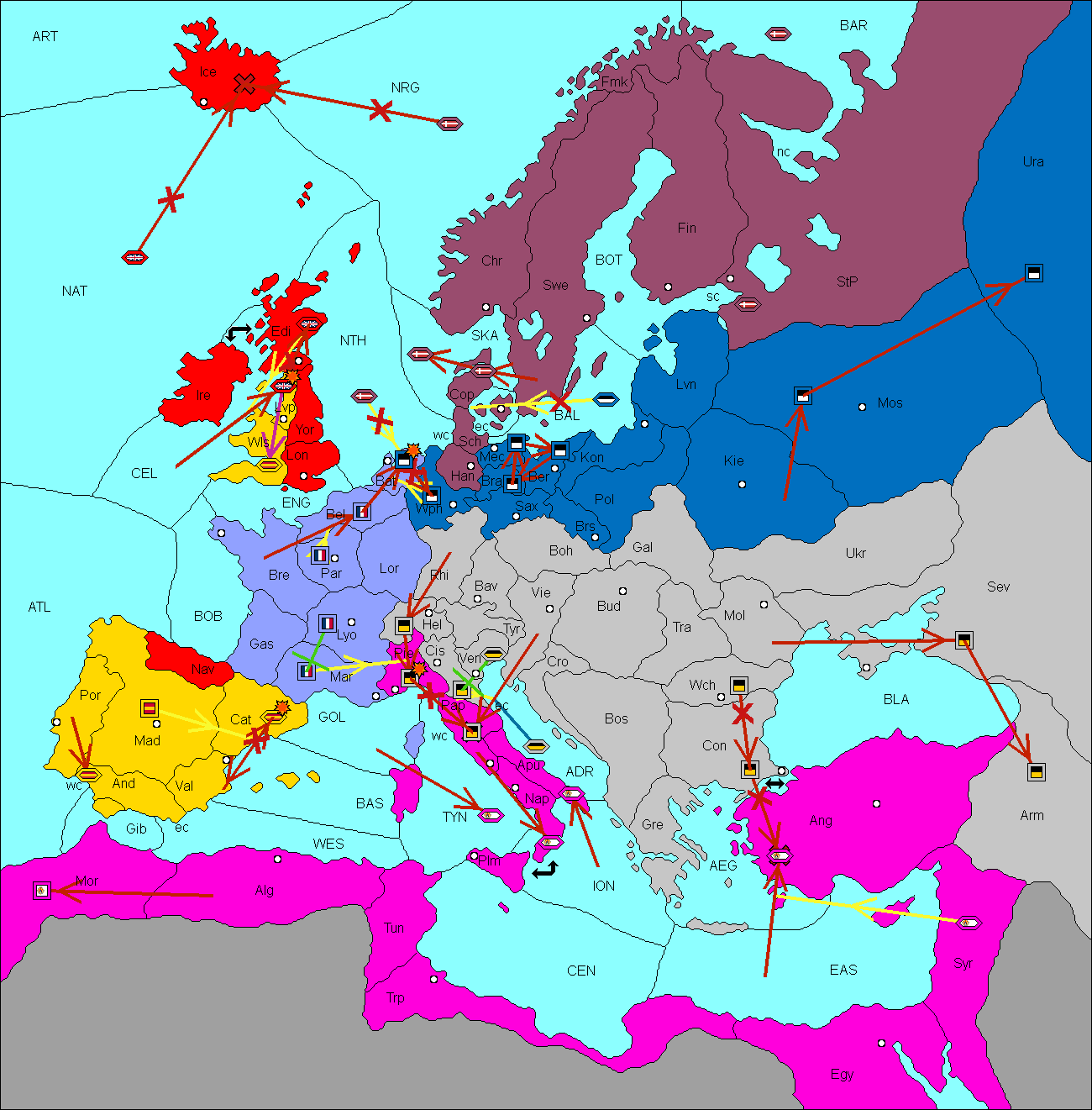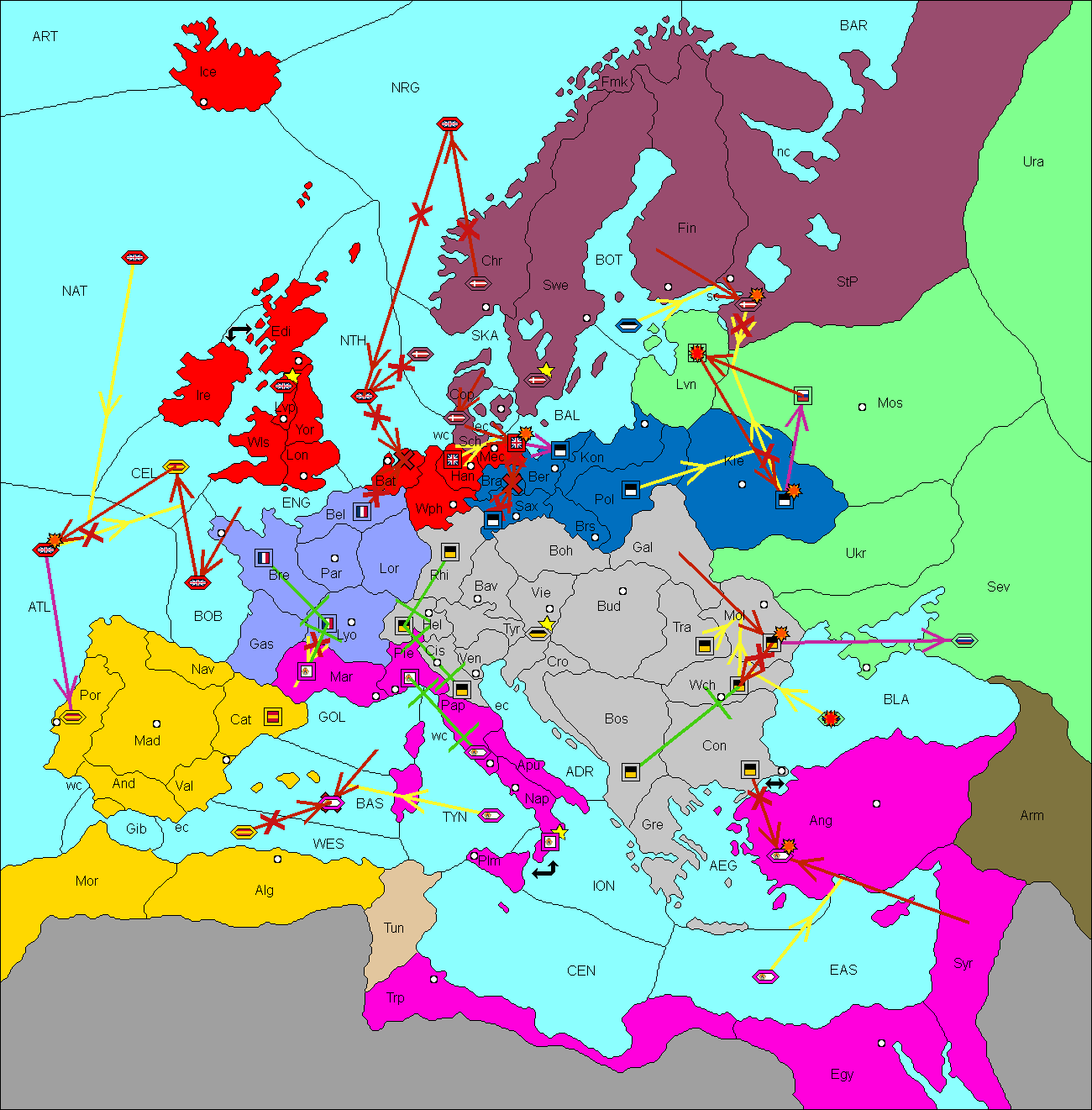 The fleet at Baltic Sea support move to Livonia from Konigsberg.