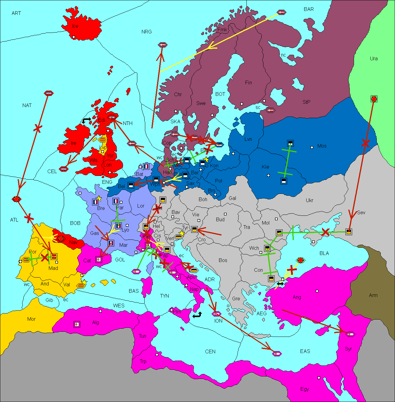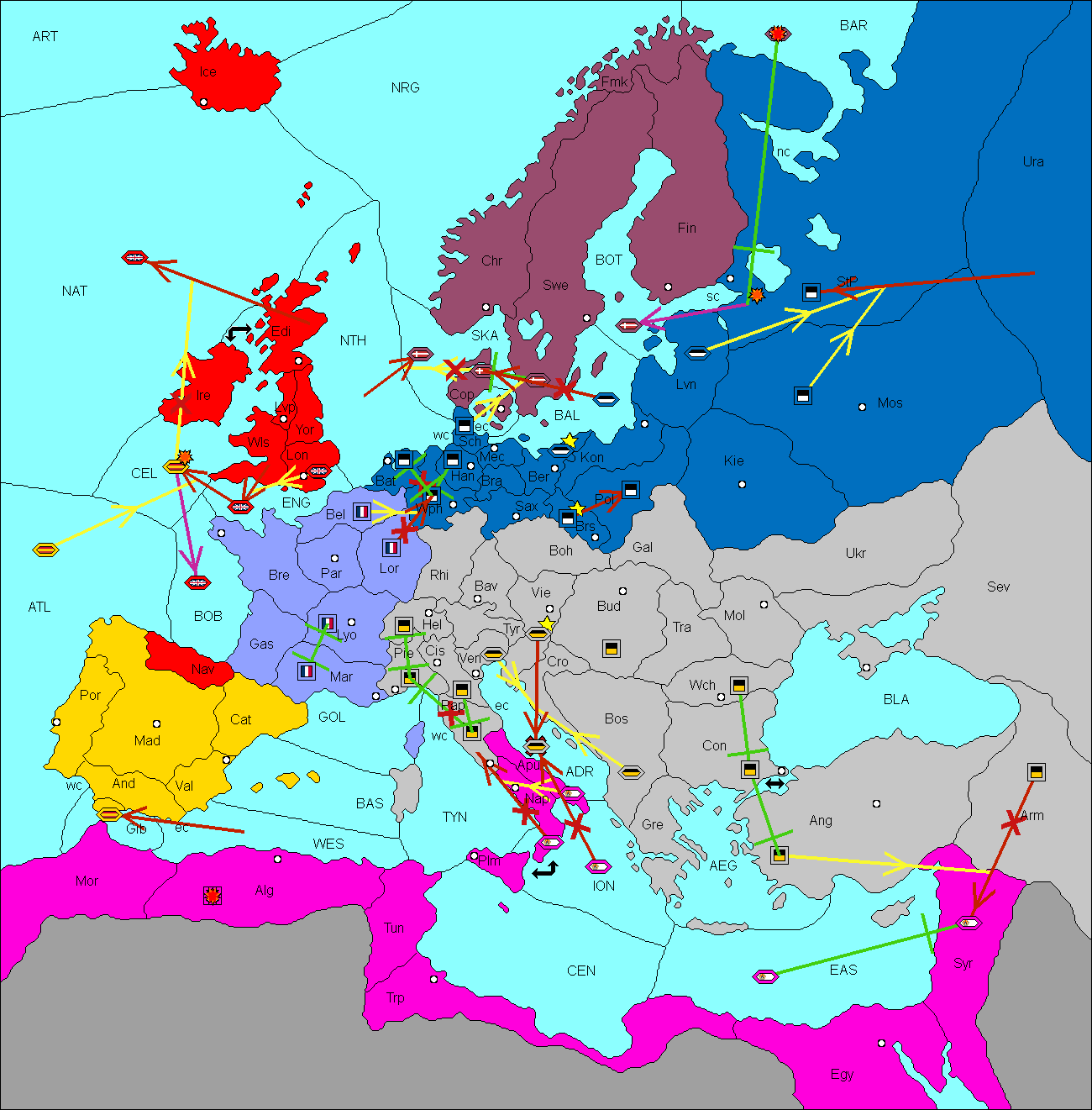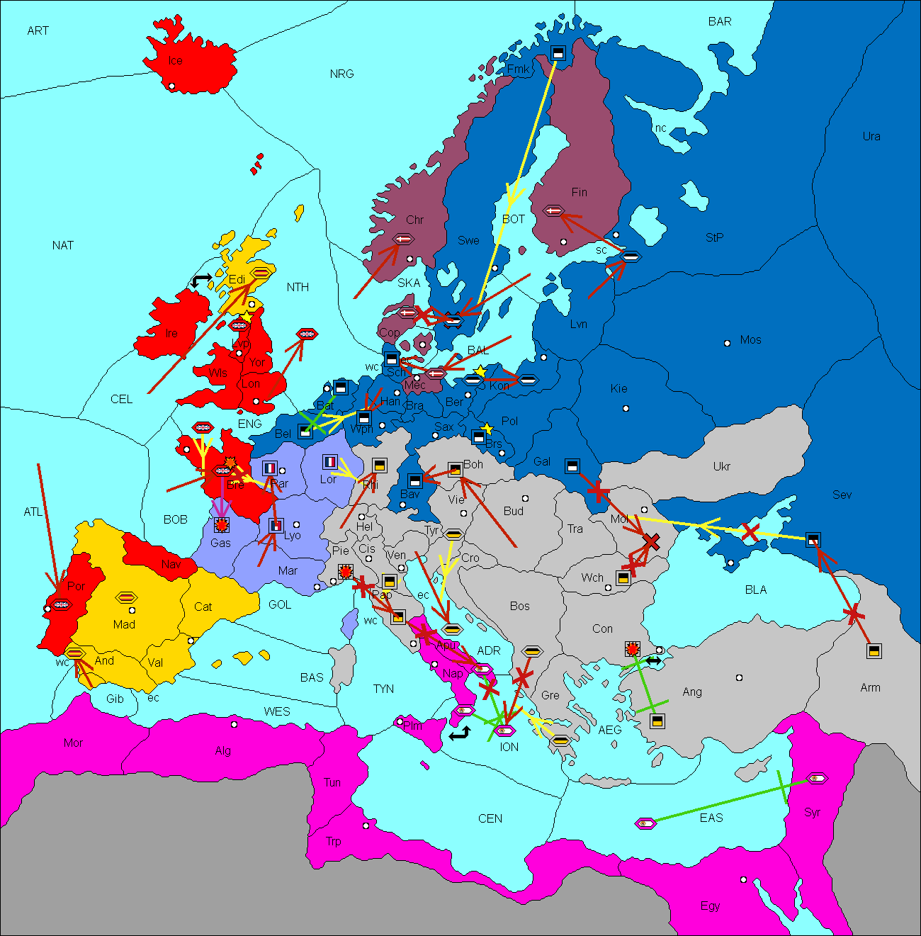 The fleet at Baltic Sea support move to Livonia from Konigsberg.