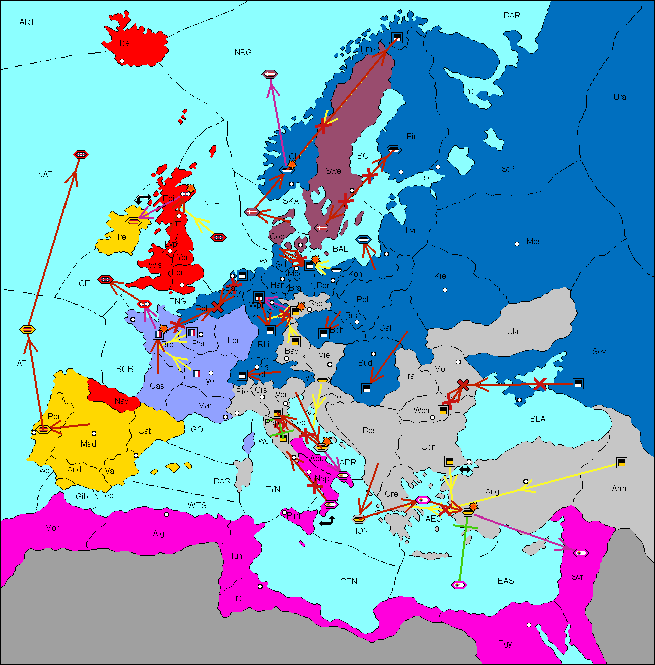 The fleet at Tripolitania support move to Eastern Mediterranean from Ionian Sea.