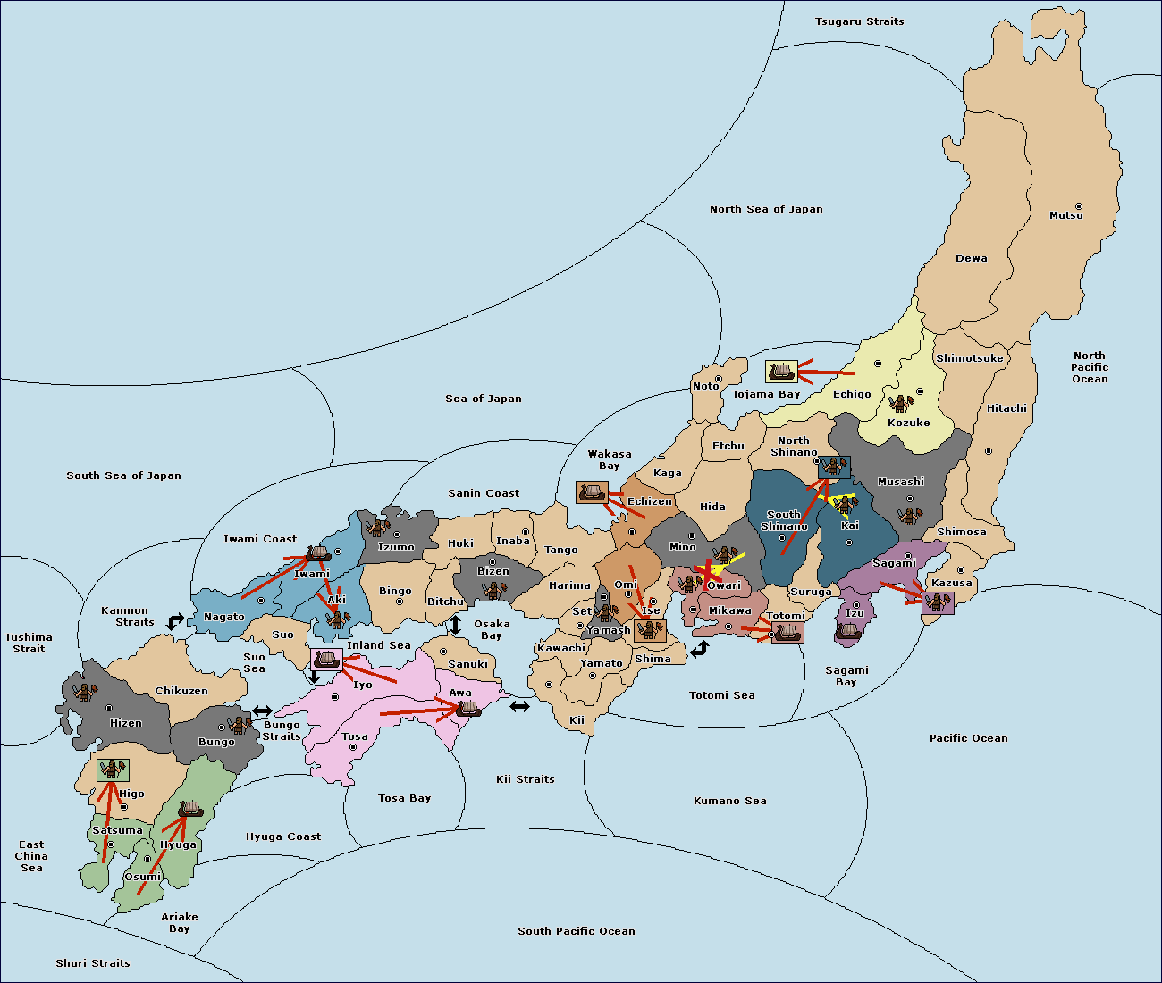 The fleet at Bungo Strait (1) support move to Bungo from Iyo.