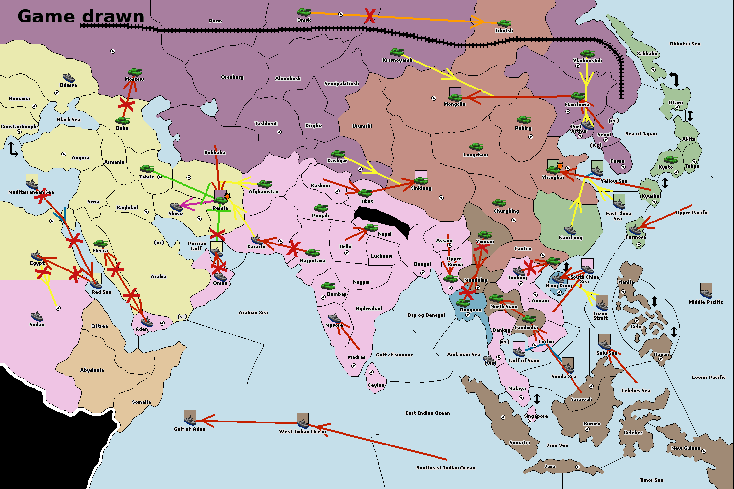 The army at Irkutsk move to Moscow via Trans-Siberian Railroad.