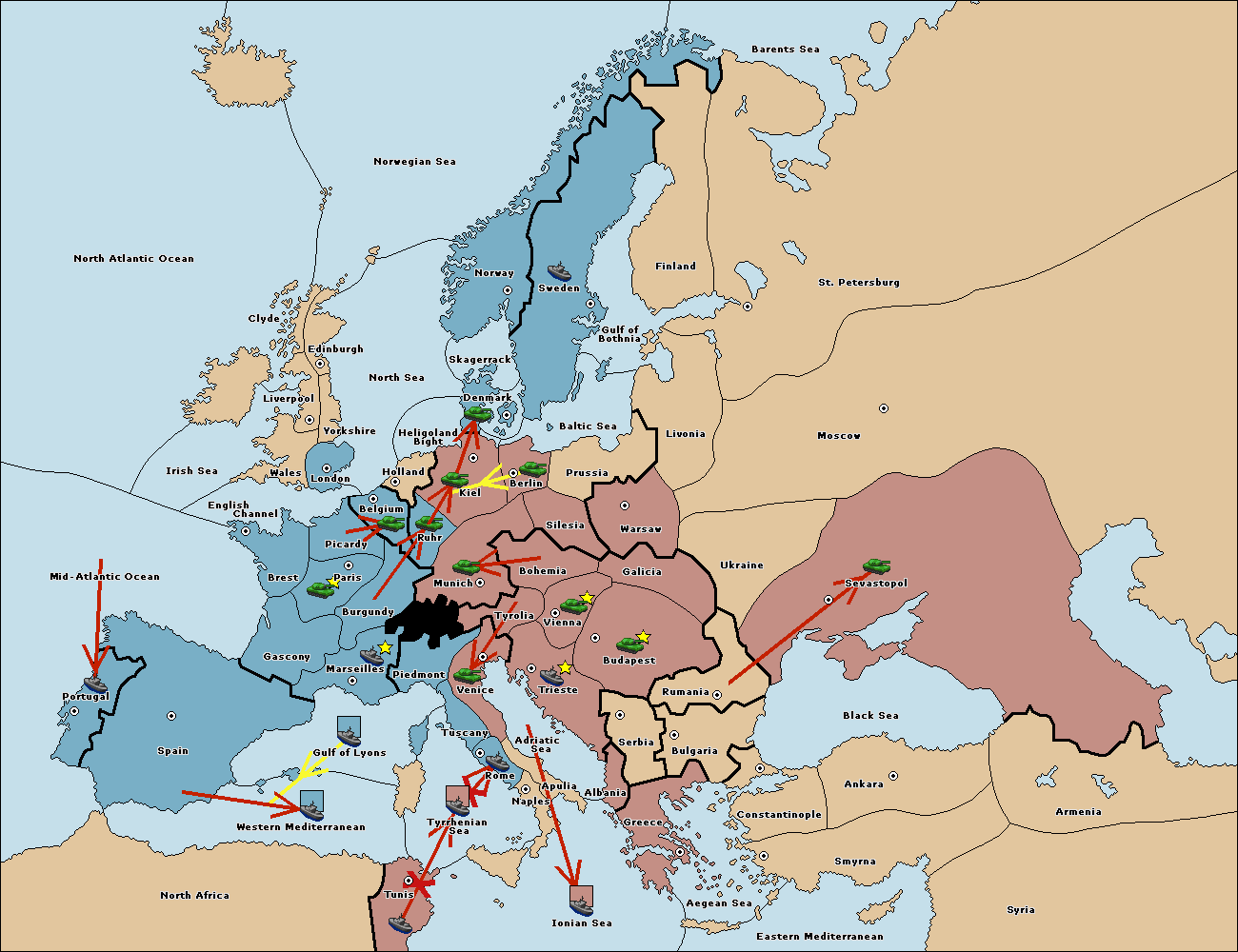 The fleet at Spain (South Coast) move to Western Mediterranean.