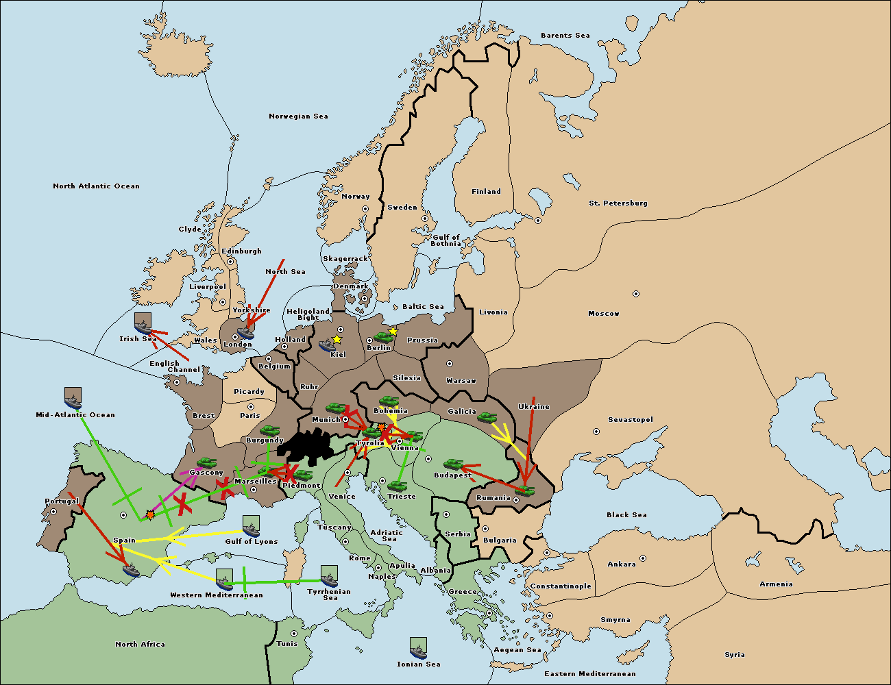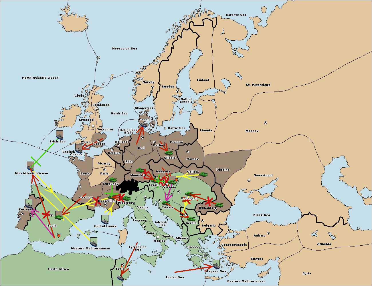 The fleet at Mid-Atlantic Ocean move to Western Mediterranean.
