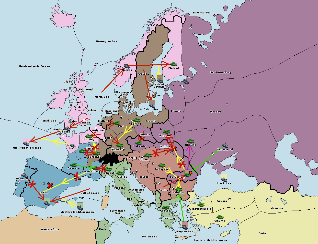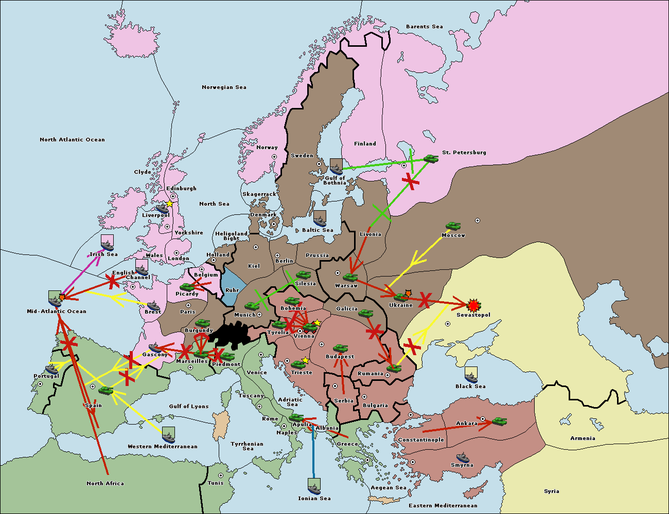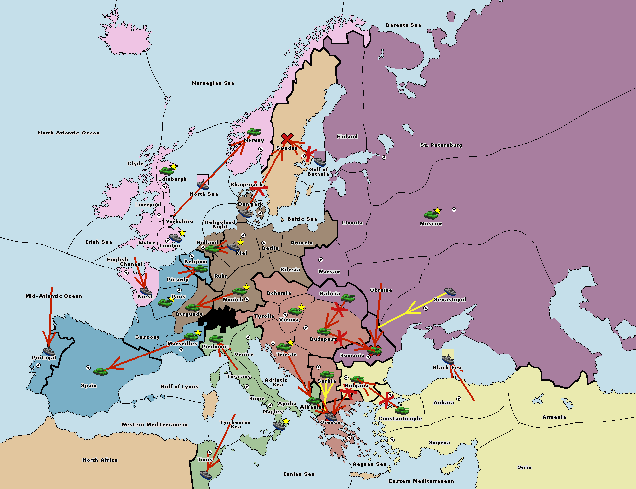 The fleet at North Africa move to Mid-Atlantic Ocean.