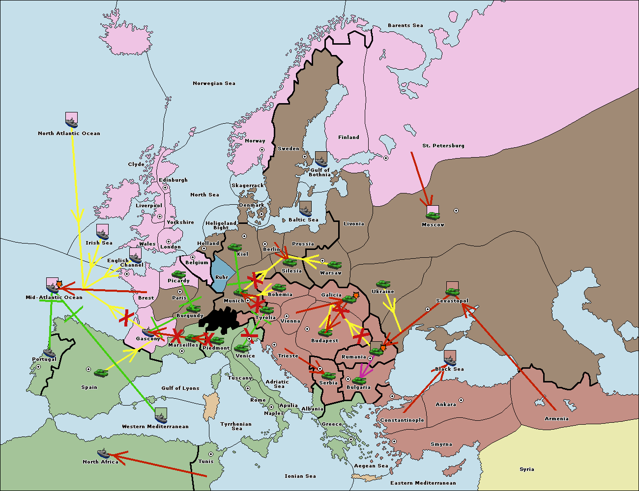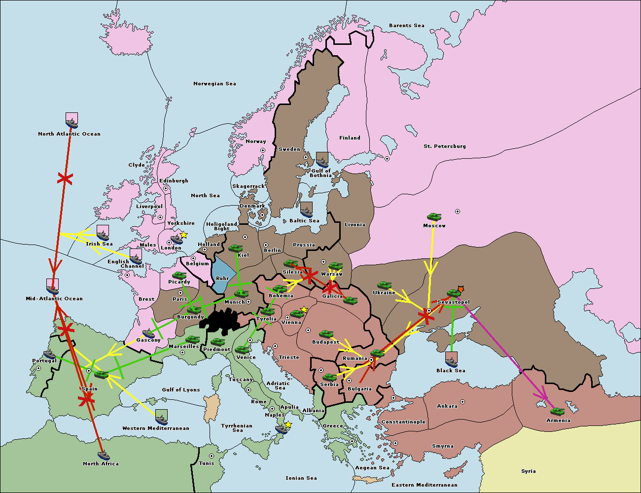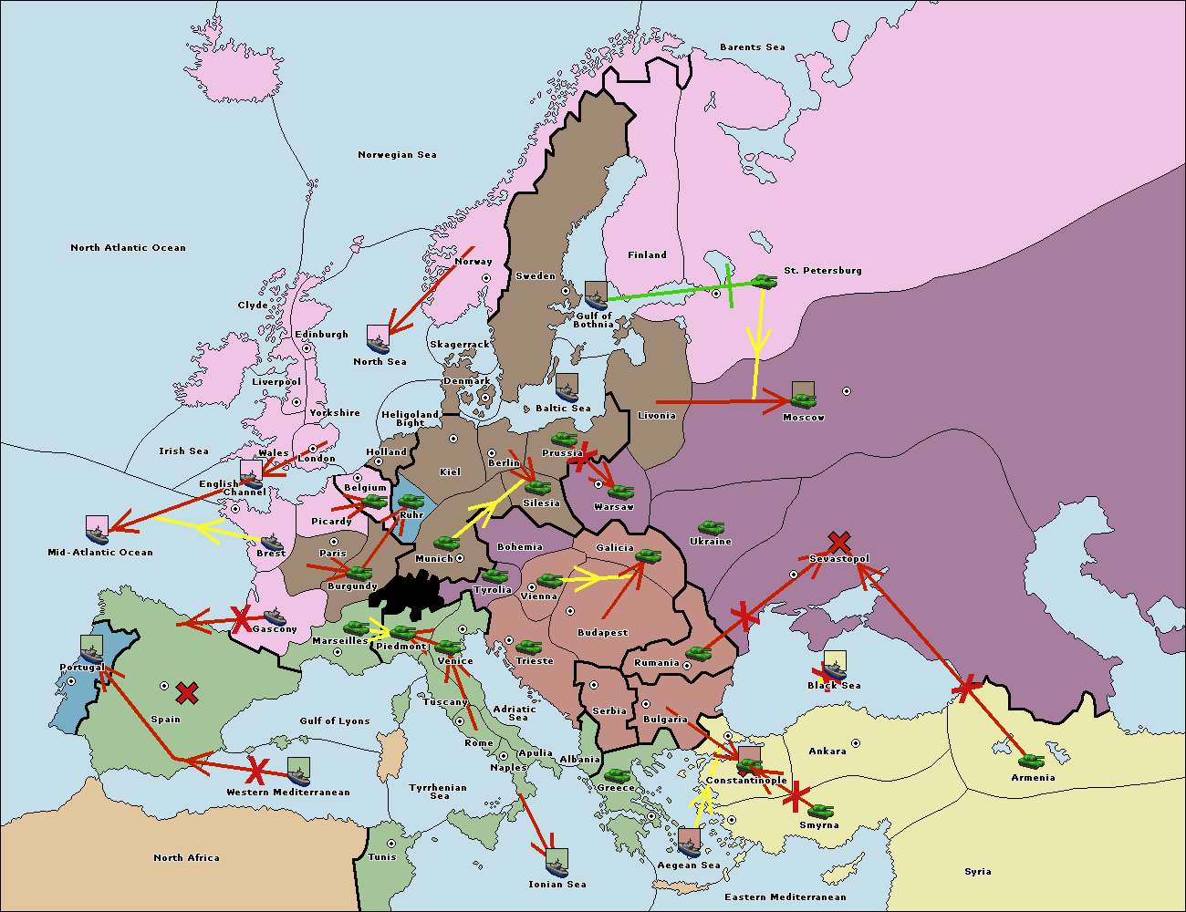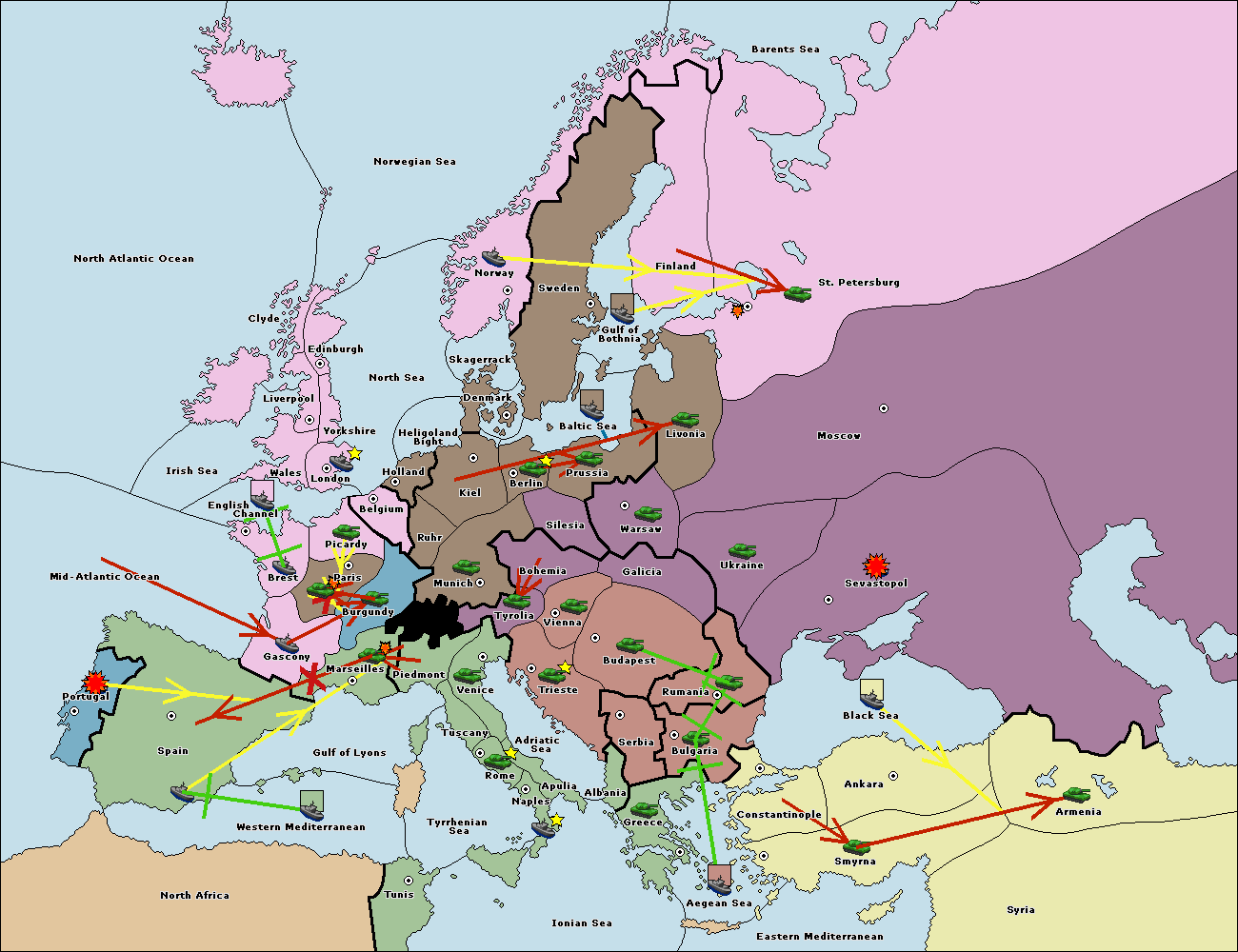The fleet at North Africa move to Mid-Atlantic Ocean.