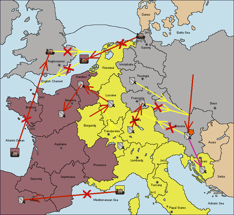The fleet at Anglosaxons support move to English Channel from Saxony.