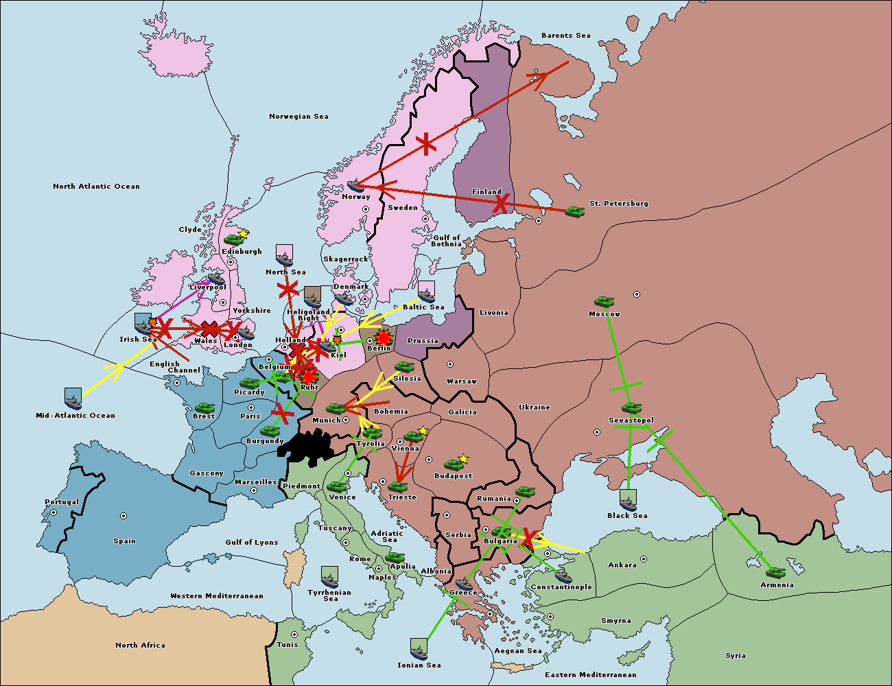 The fleet at Gulf of Bothnia move to St. Petersburg (South Coast).