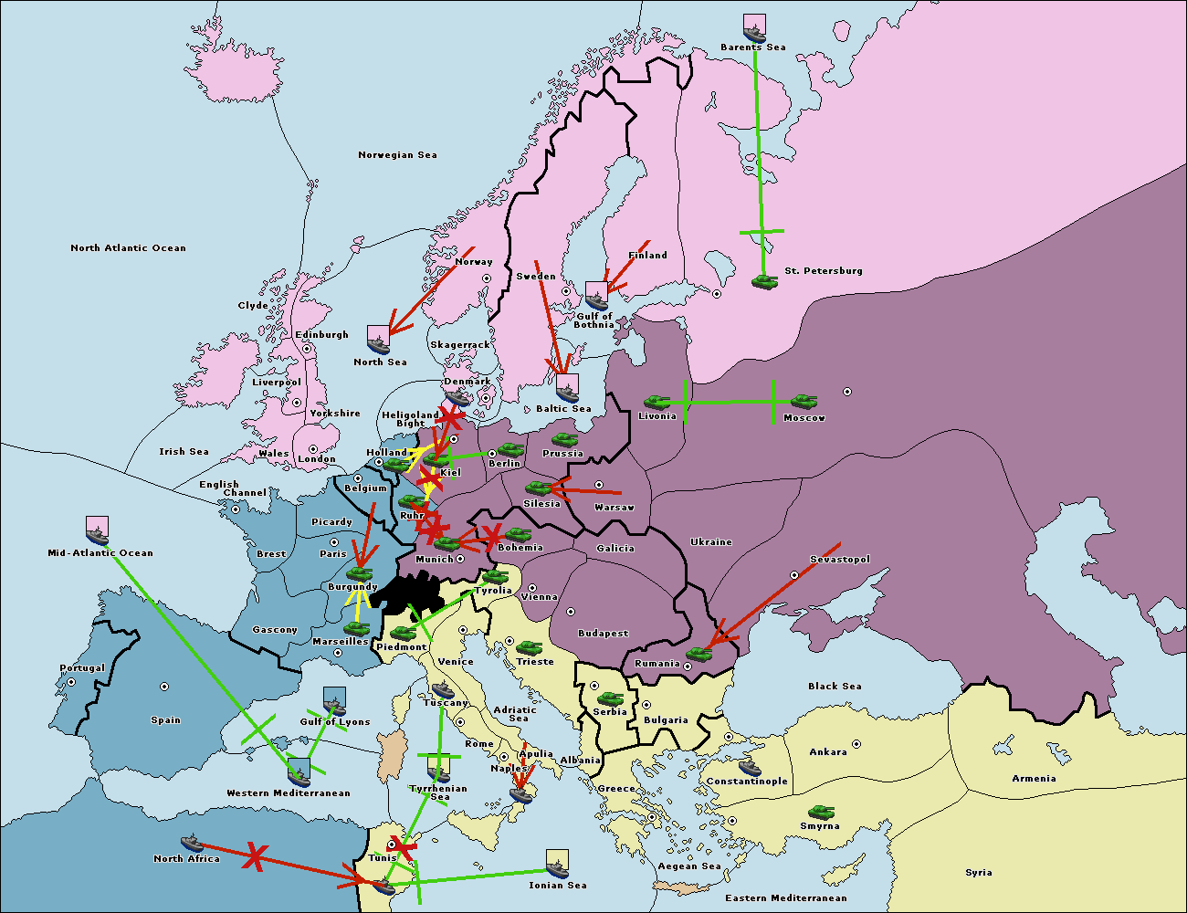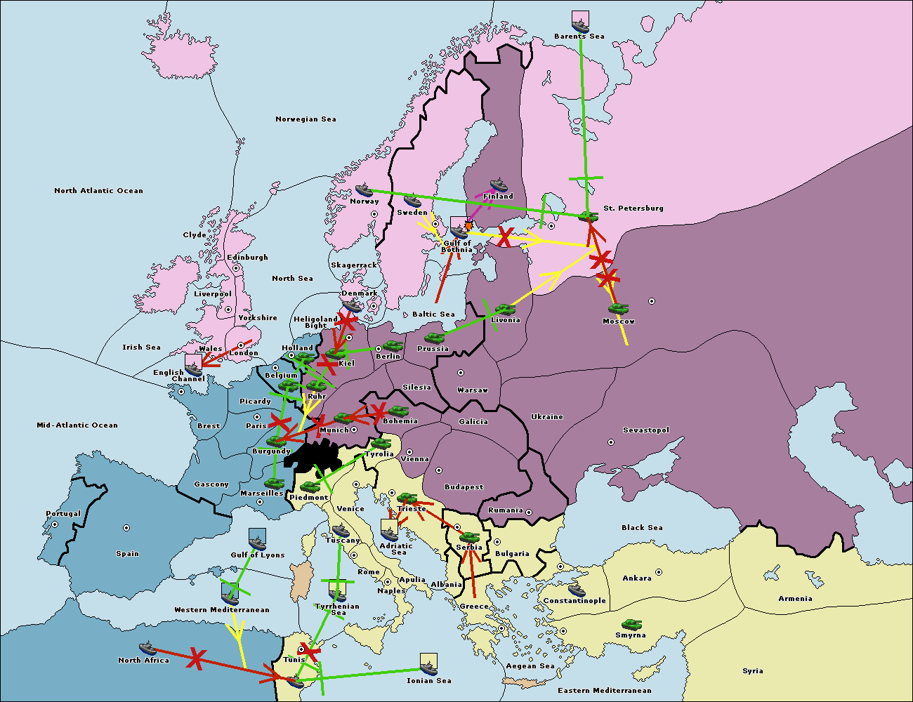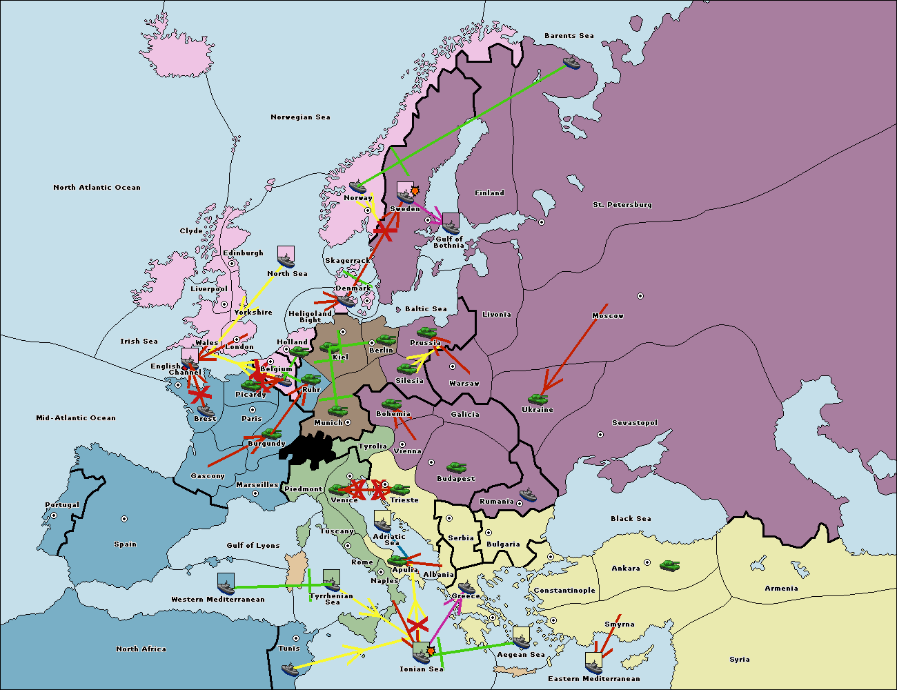 The fleet at Bulgaria (South Coast) move to Greece.
