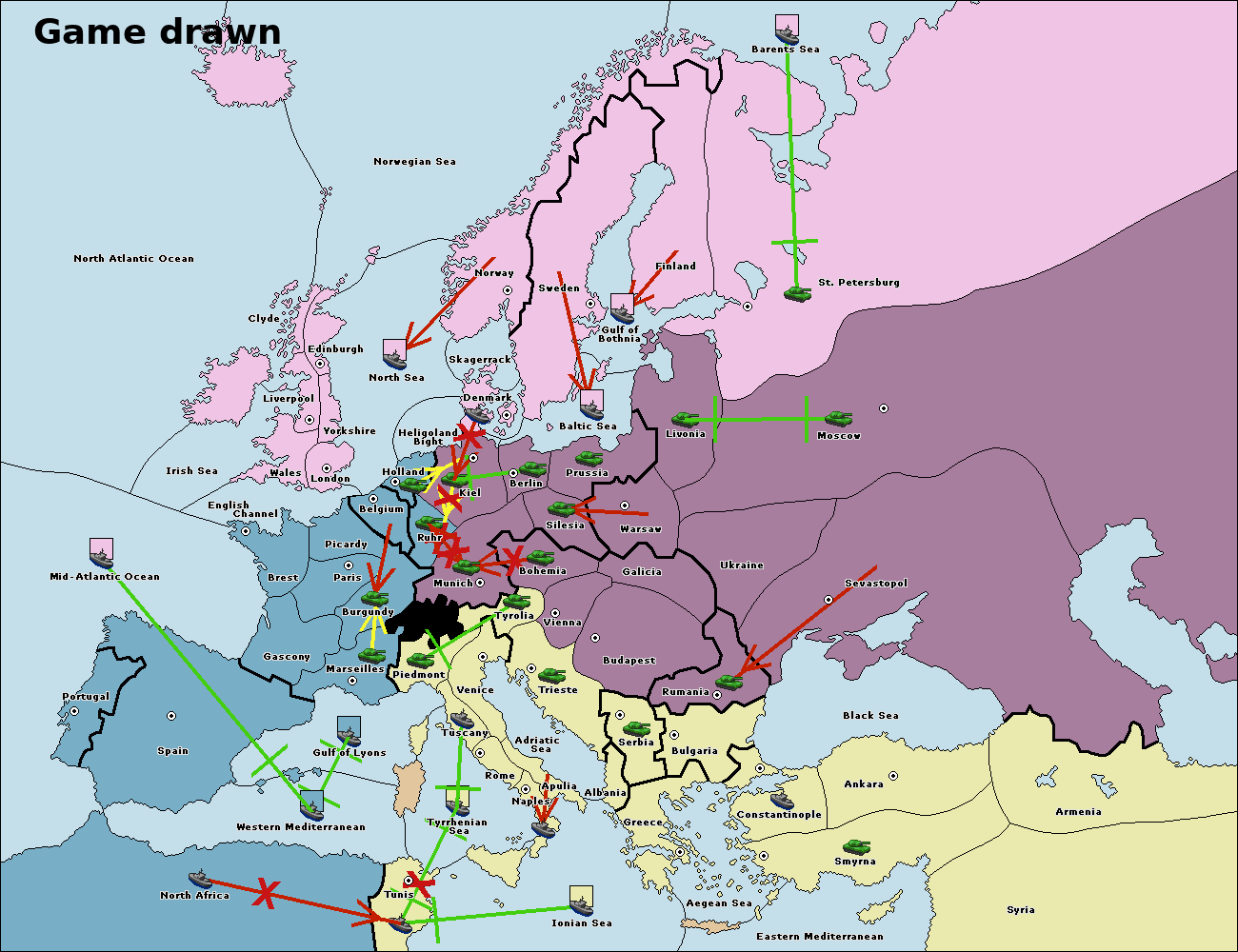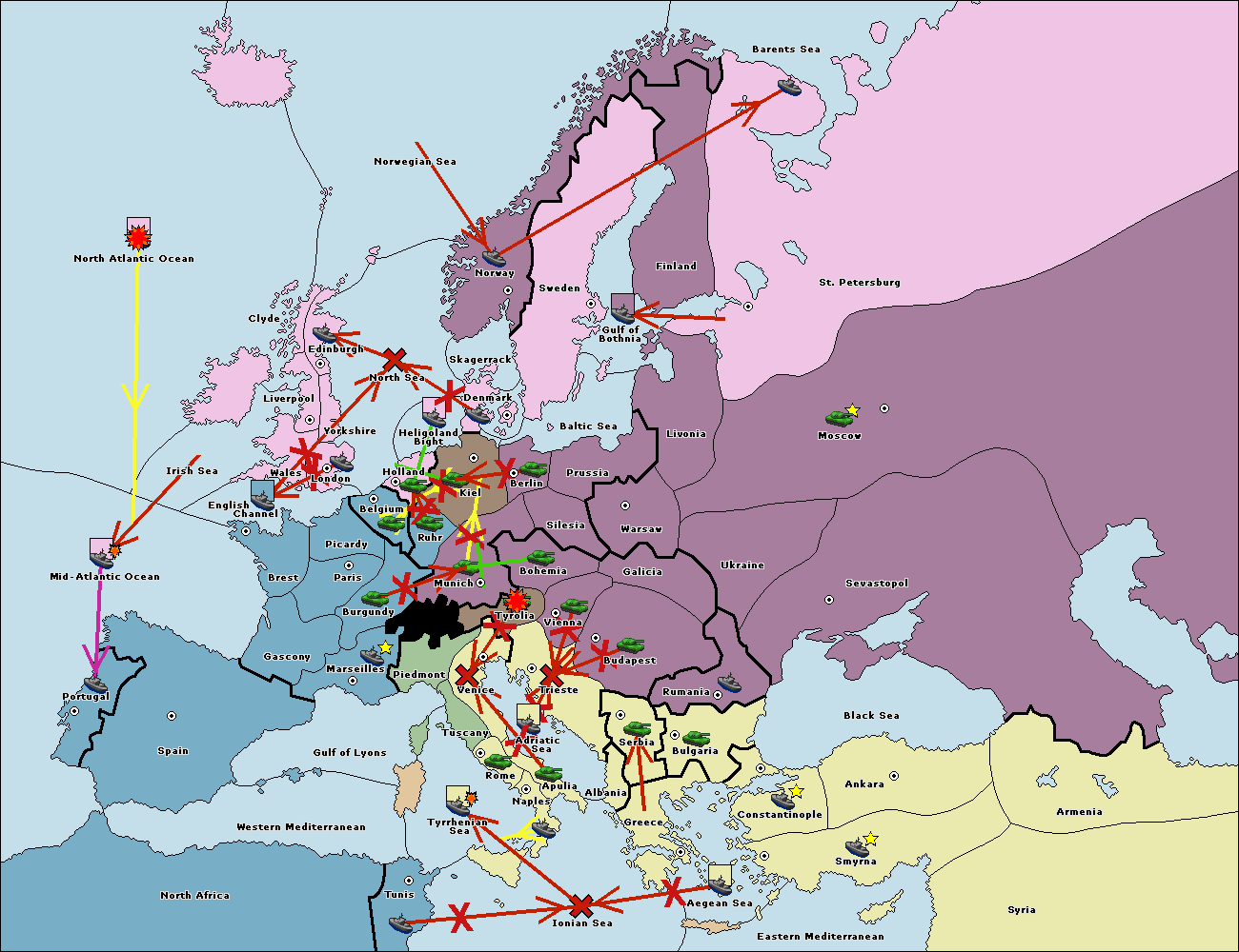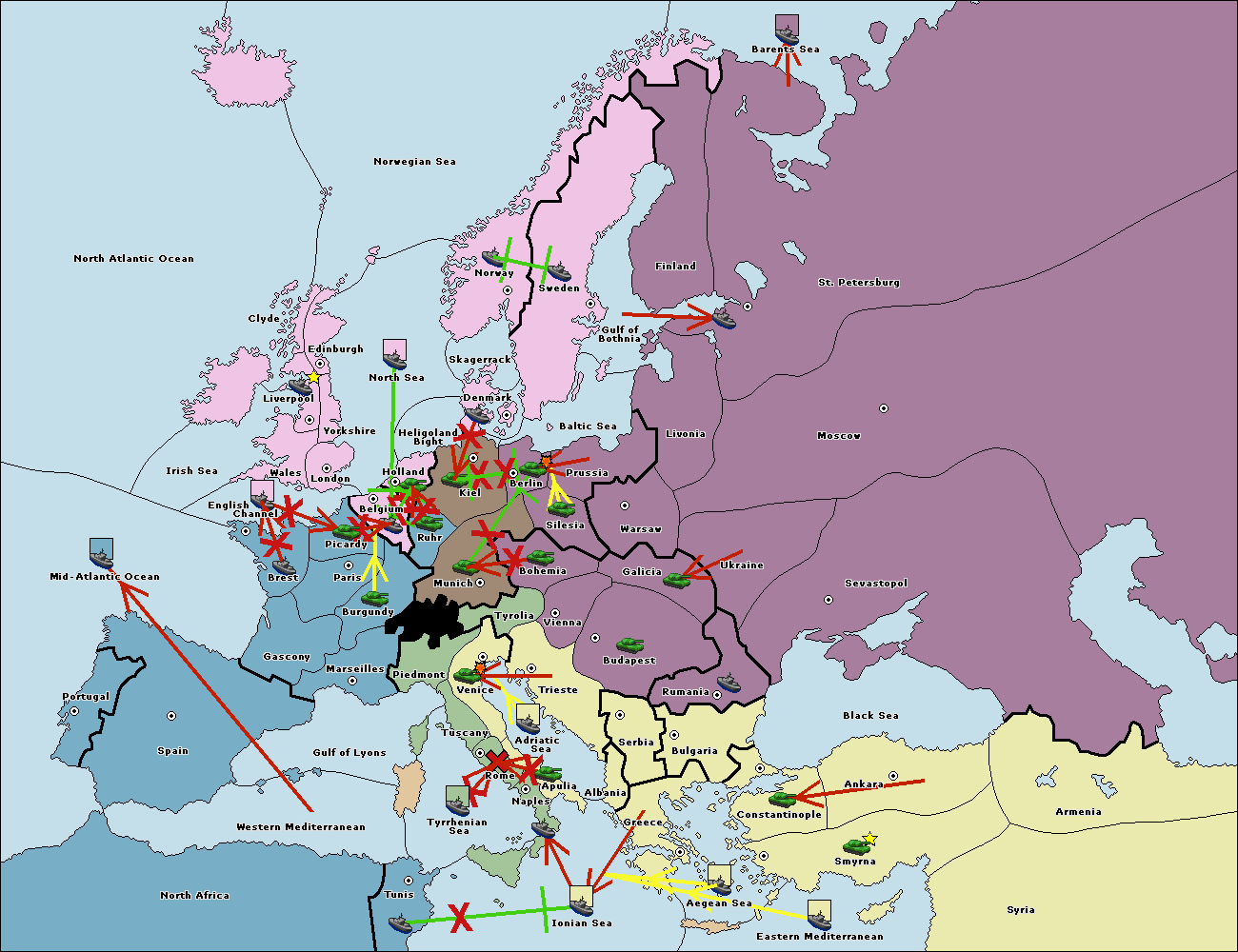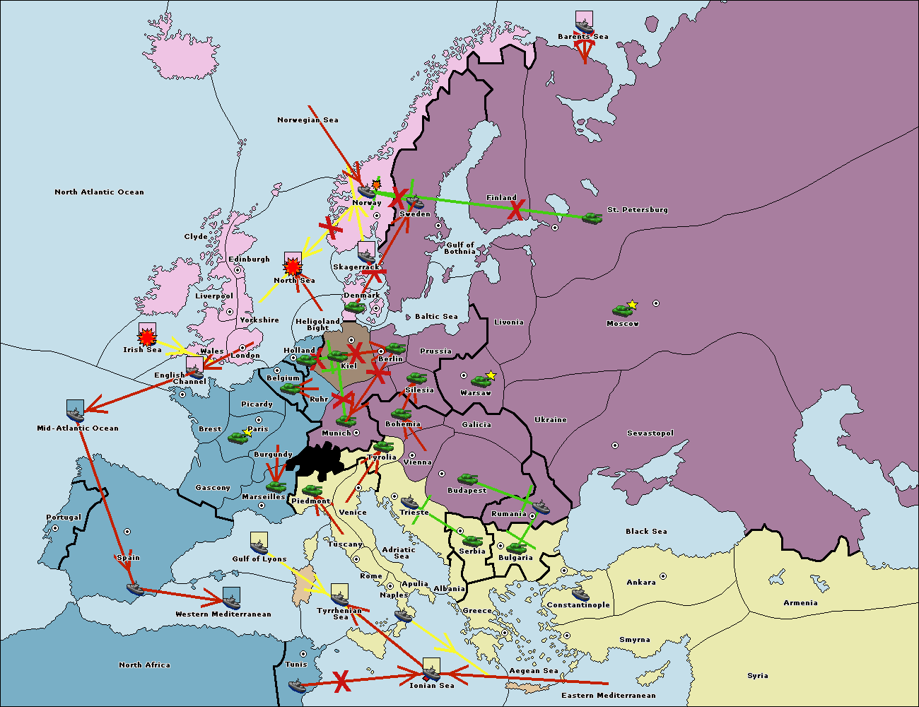 The fleet at Bulgaria (South Coast) move to Greece.