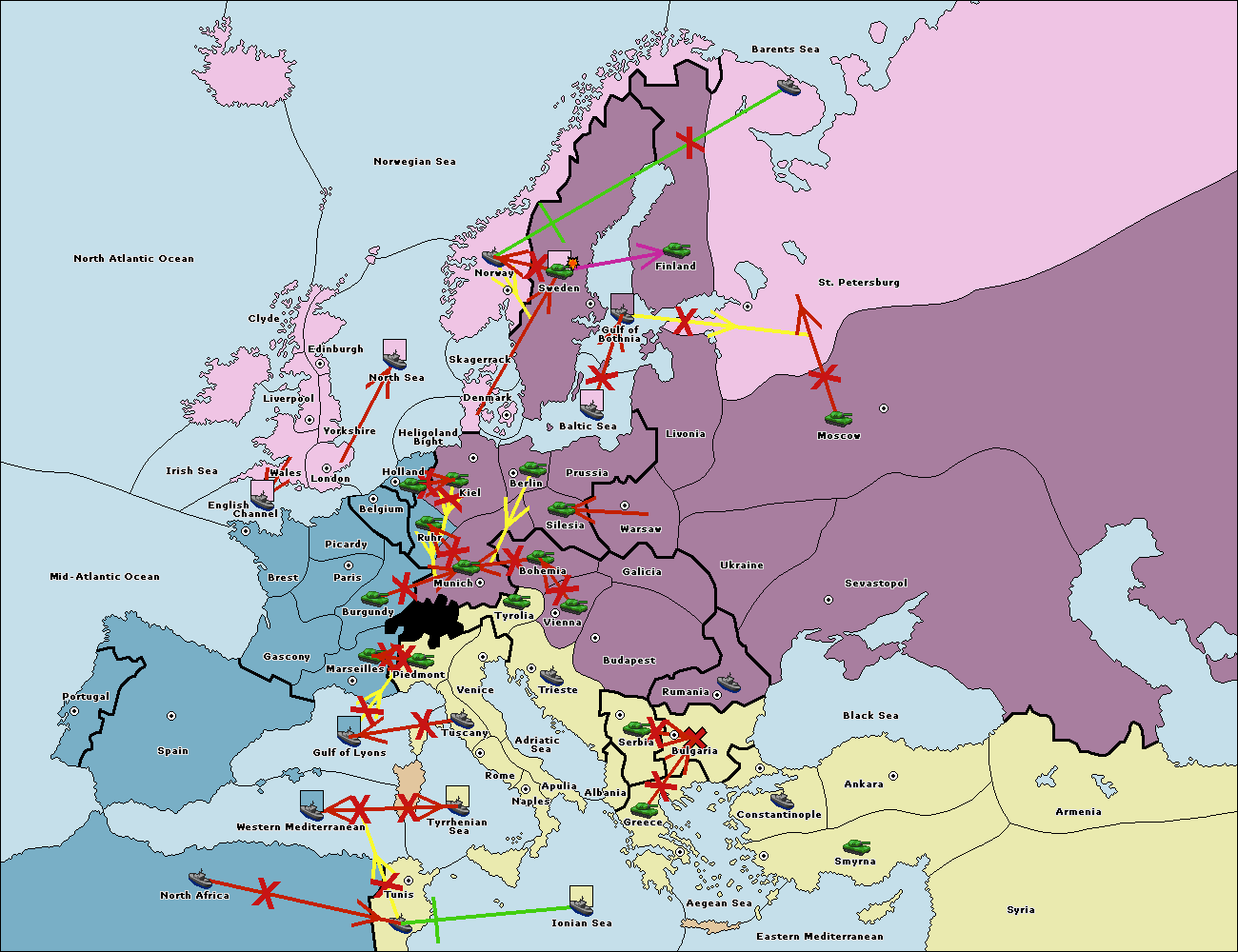 The fleet at Tyrrhenian Sea support hold to Tunis.