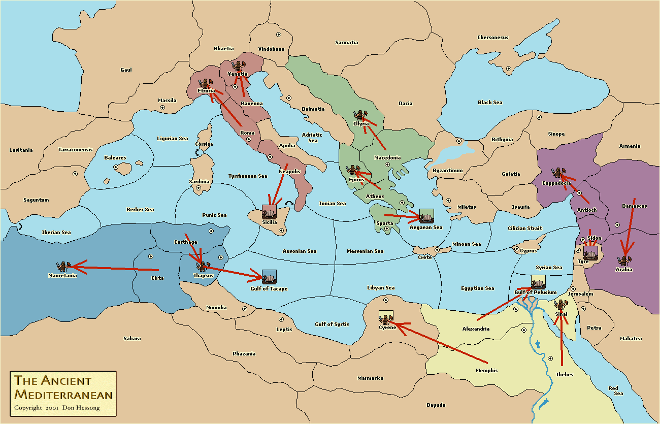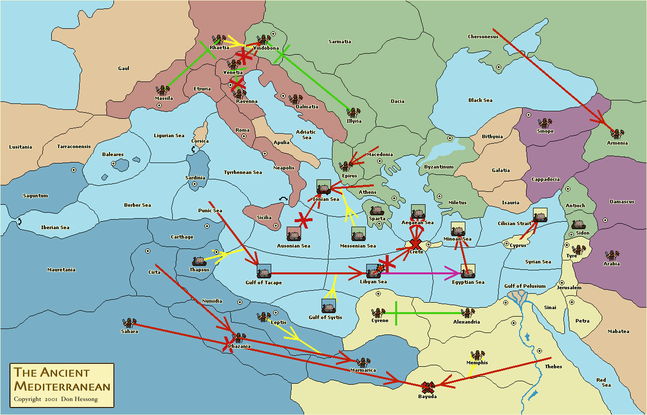 The fleet at Libyan Sea support move to Messenian Sea from Gulf of Tacape.
