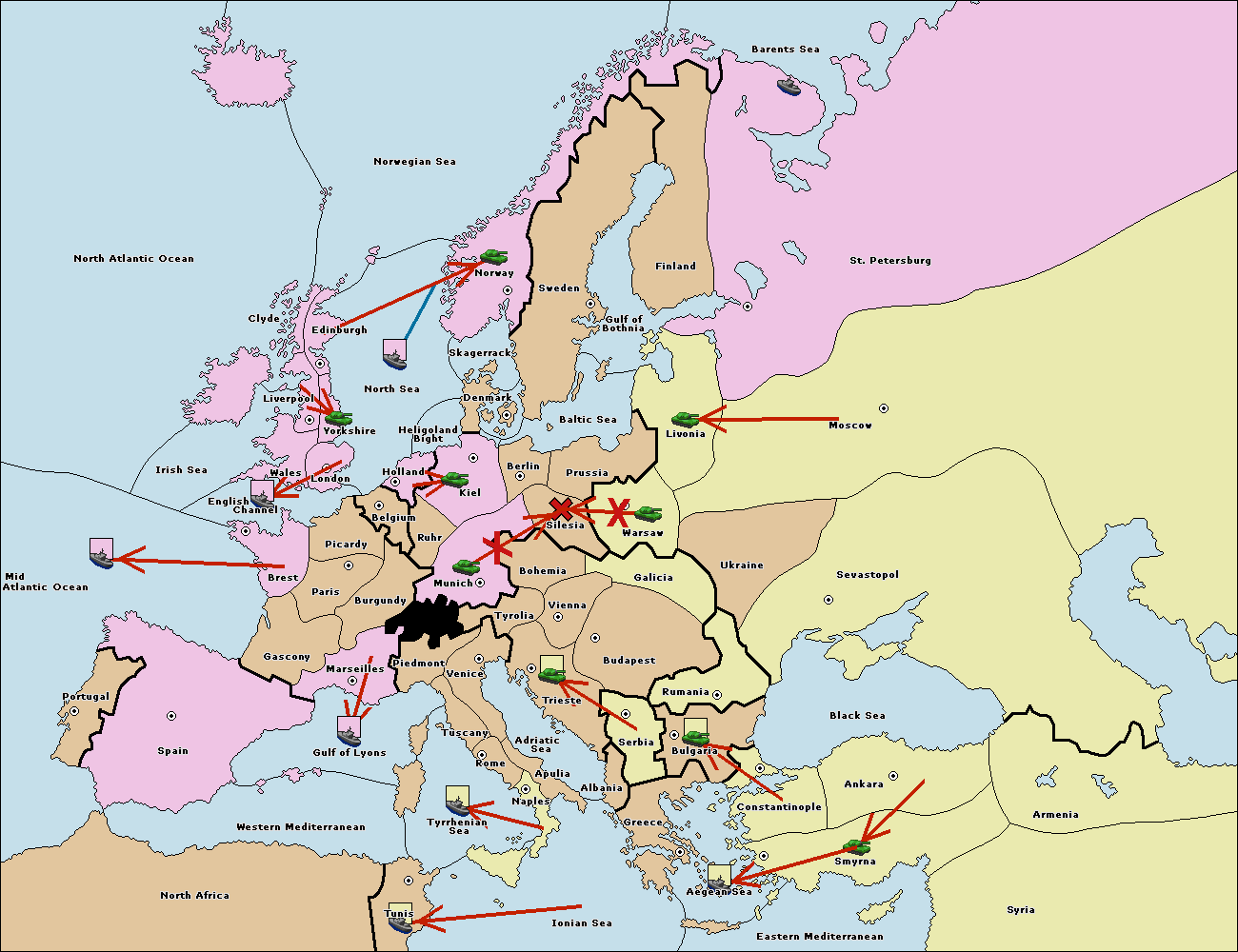 The army at Tyrolia support move to Munich from Silesia.