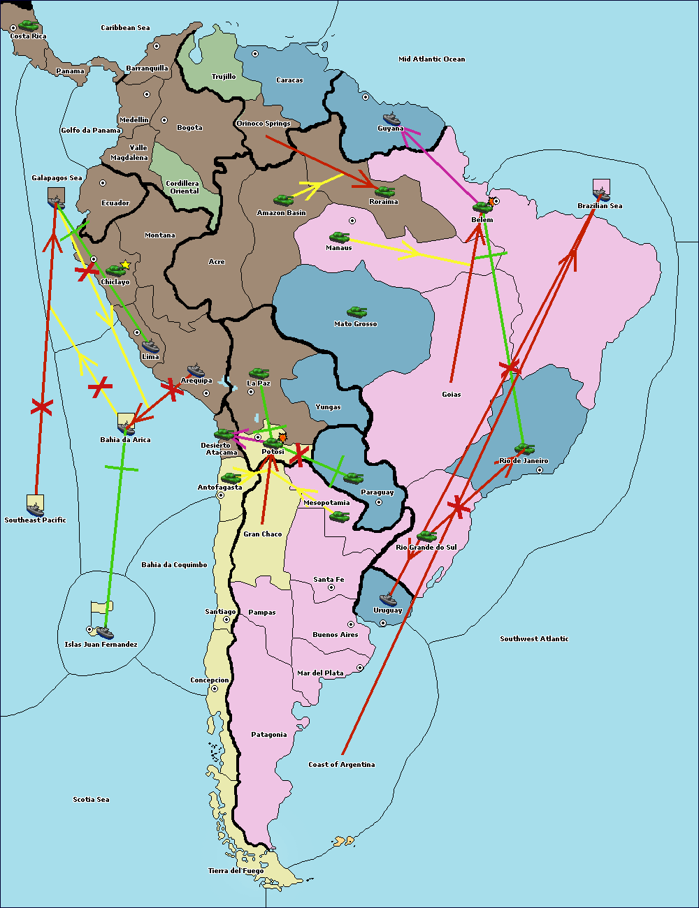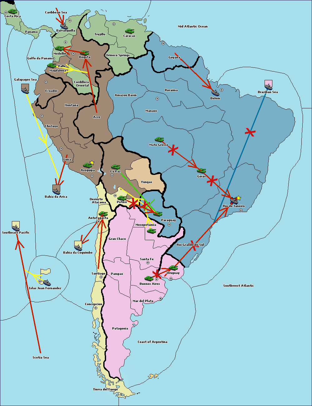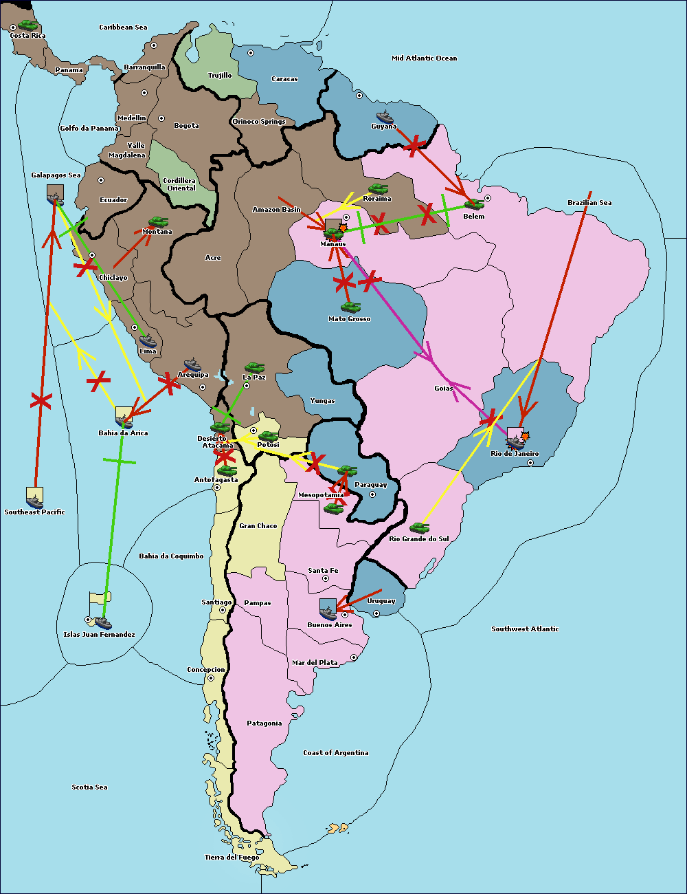 The fleet at Brazilian Sea move to Mid Atlantic Ocean.