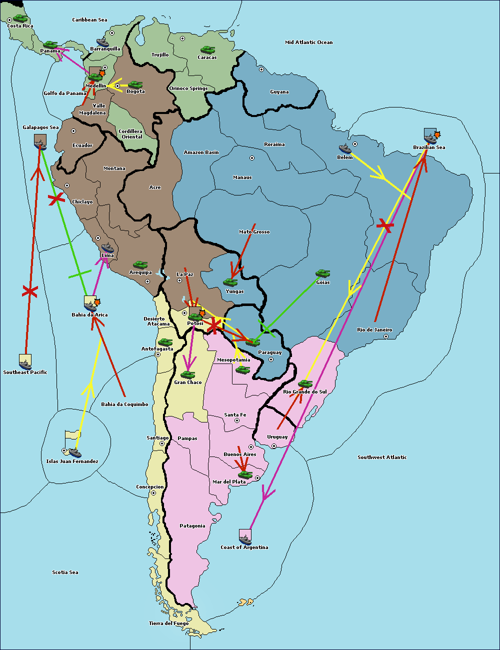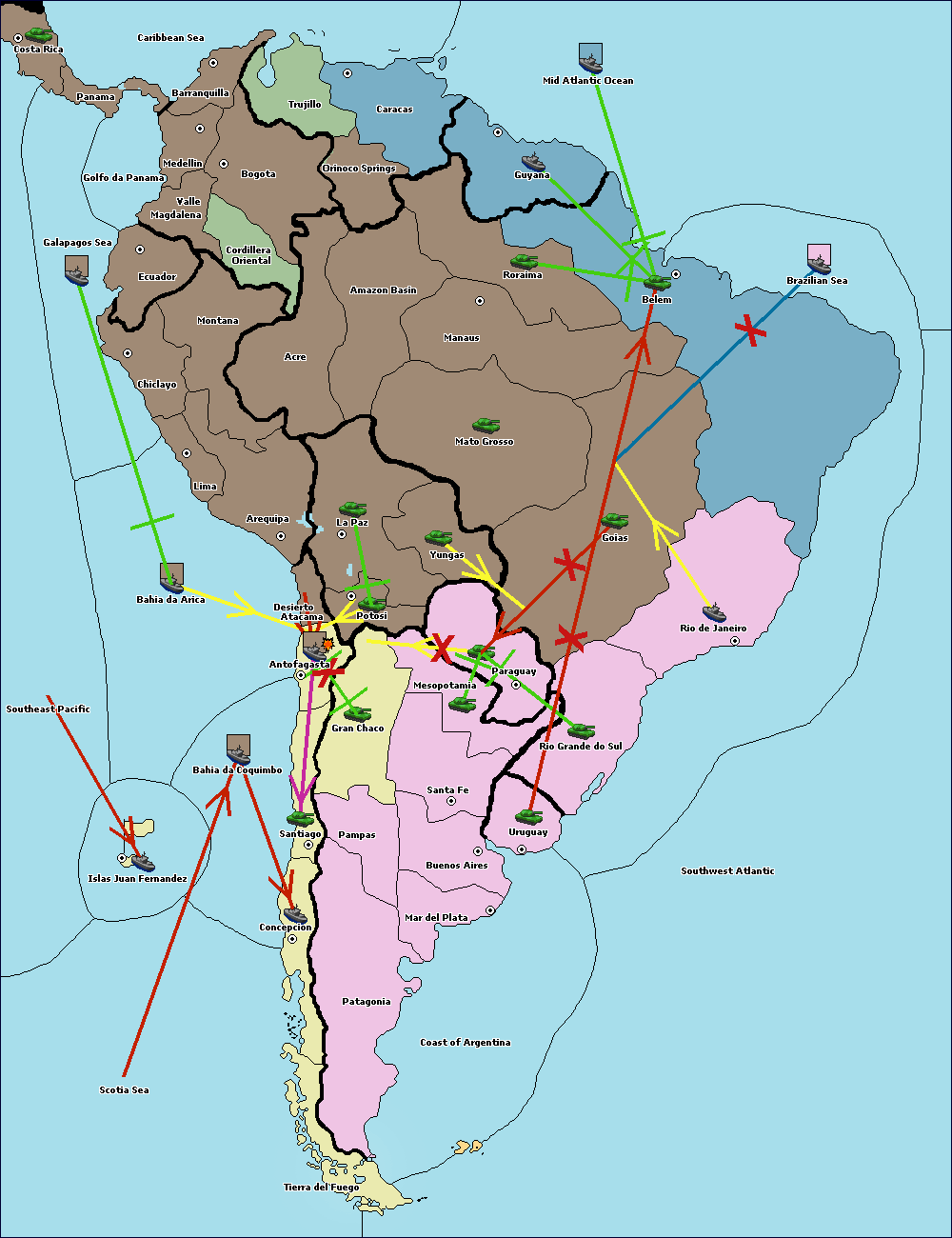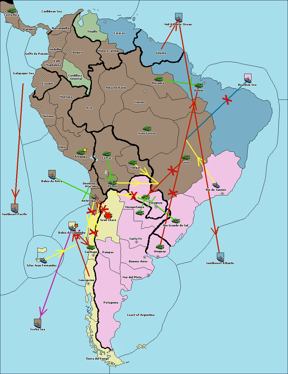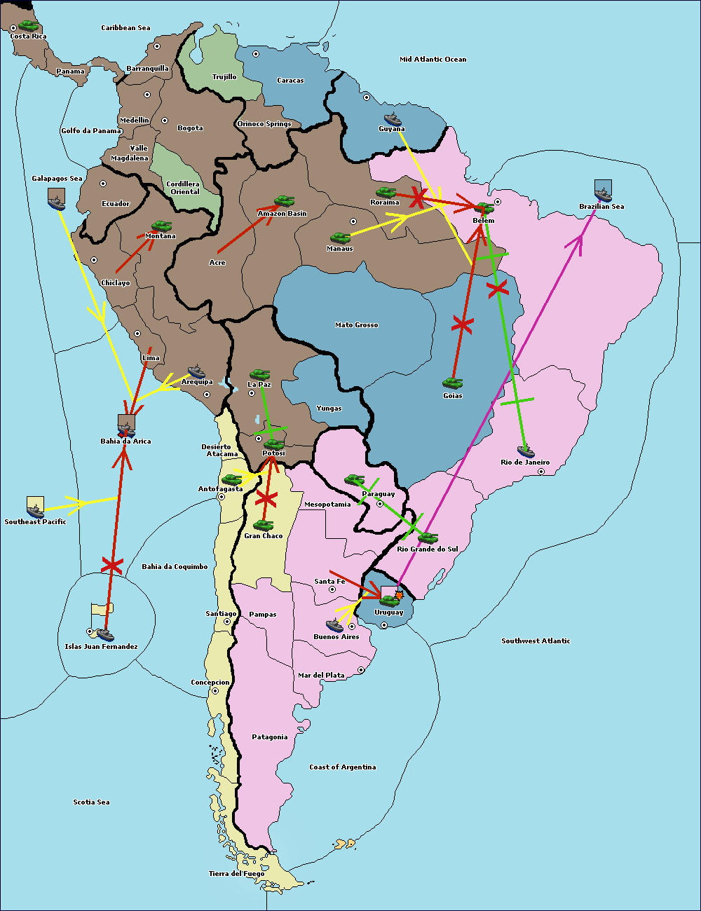 The fleet at Brazilian Sea move to Coast of Argentina.