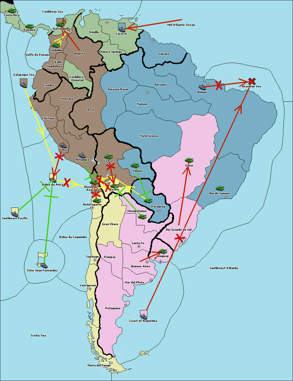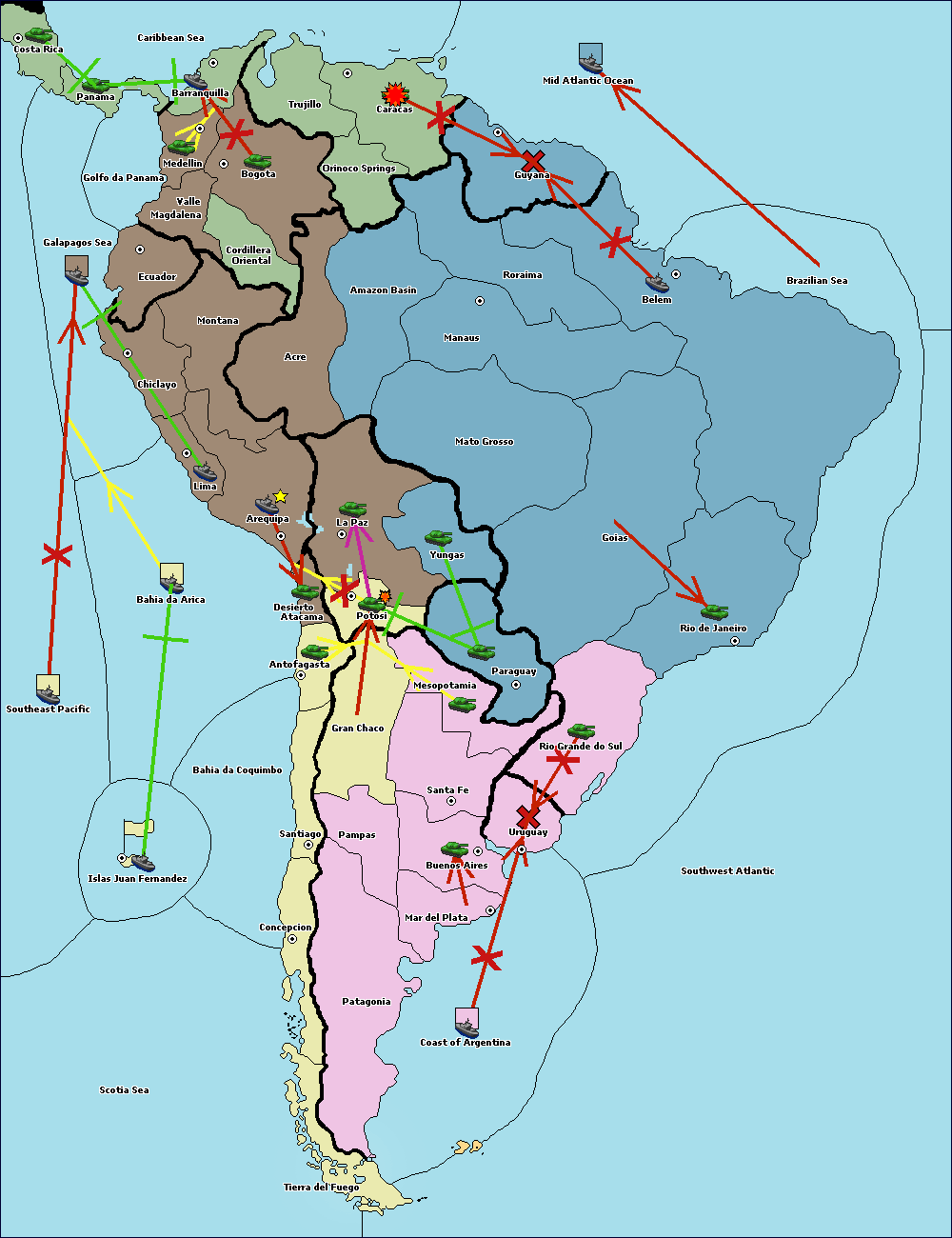 The fleet at Mid Atlantic Ocean move to Caracas.