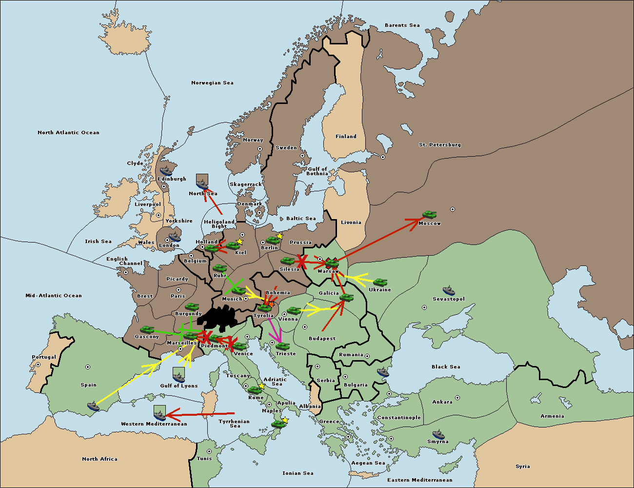 The fleet at Spain (South Coast) support move to Marseilles from Piedmont.