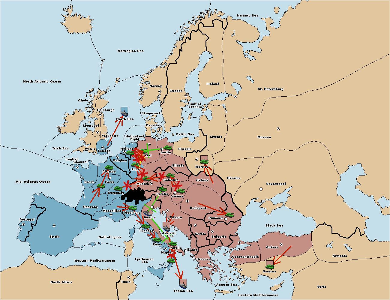 The fleet at Adriatic Sea support move to Venice from Tyrolia.