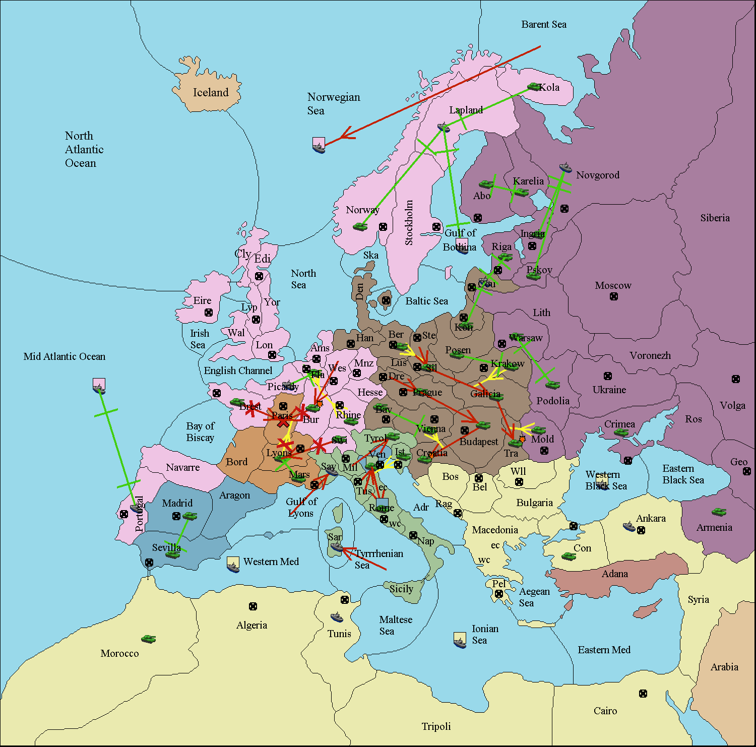 The fleet at Sardinia support move to Gulf of Lyons from Tyrrhenian Sea.